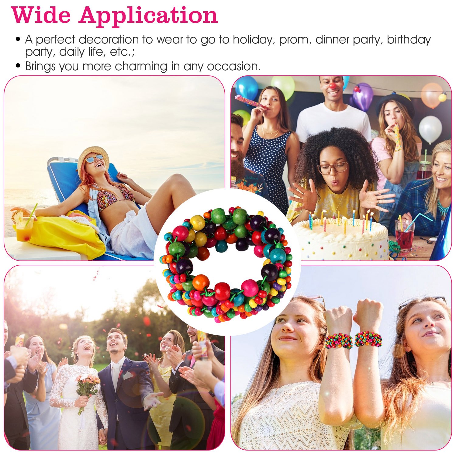 *Beautiful Bracelets for Women*:Handmade with colorful wooden beads,its exotic style brings more charming for women. The unique design can showcase your unique personality & style.