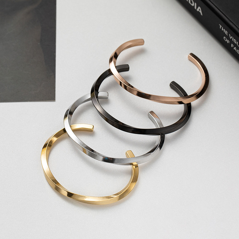 Fried Dough Twists Column Bright Face C-shaped Opening Adjustable Bracelet