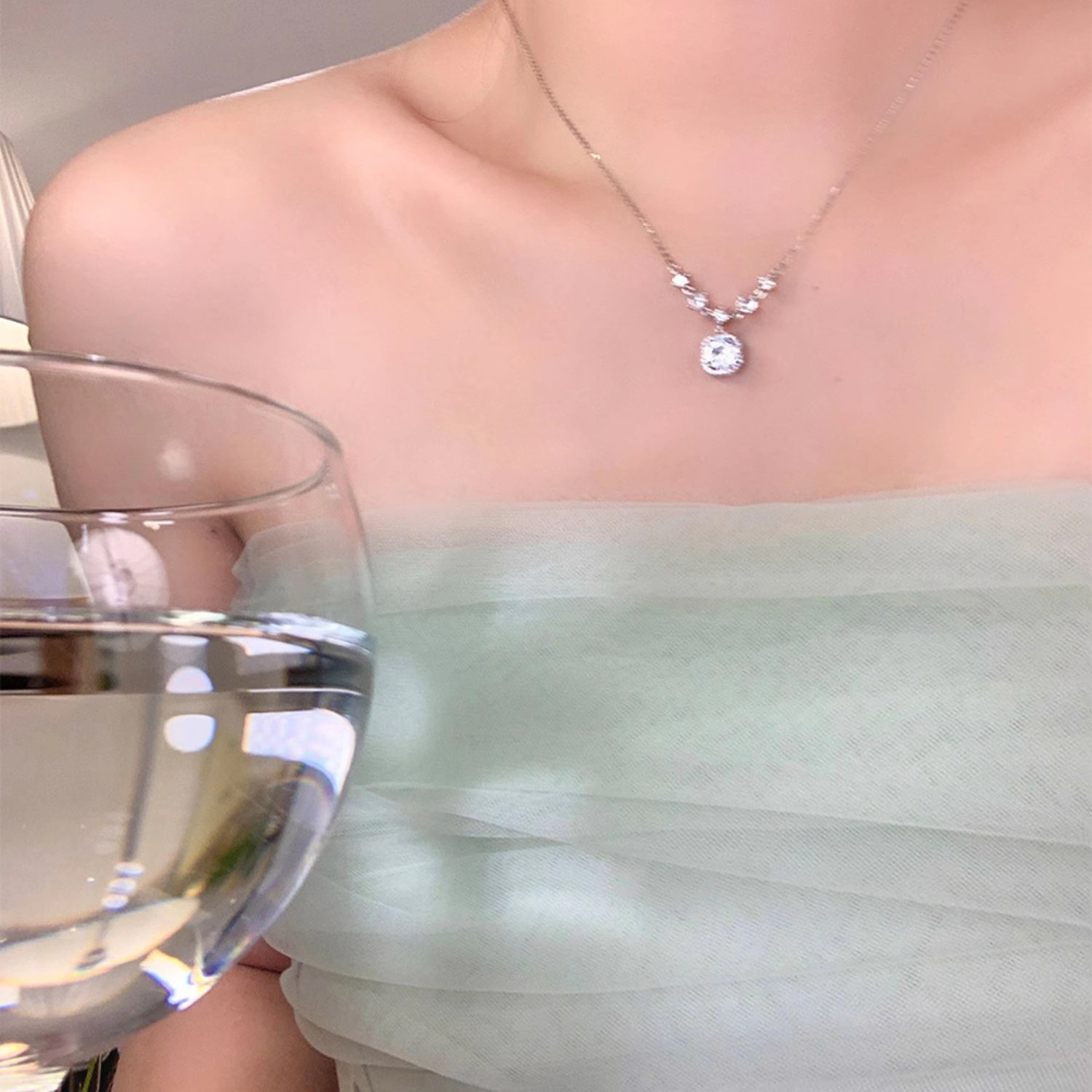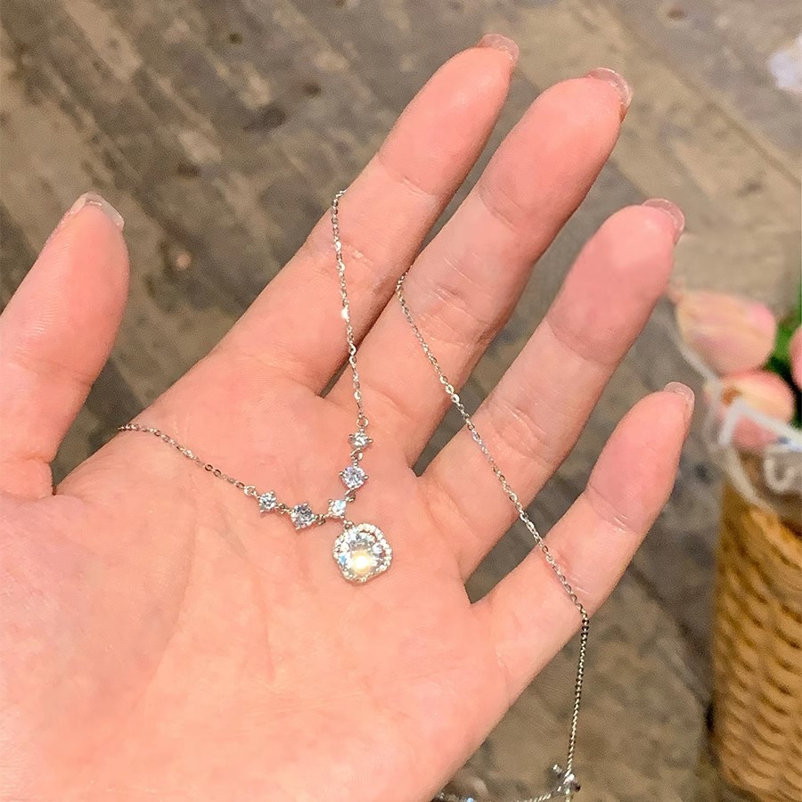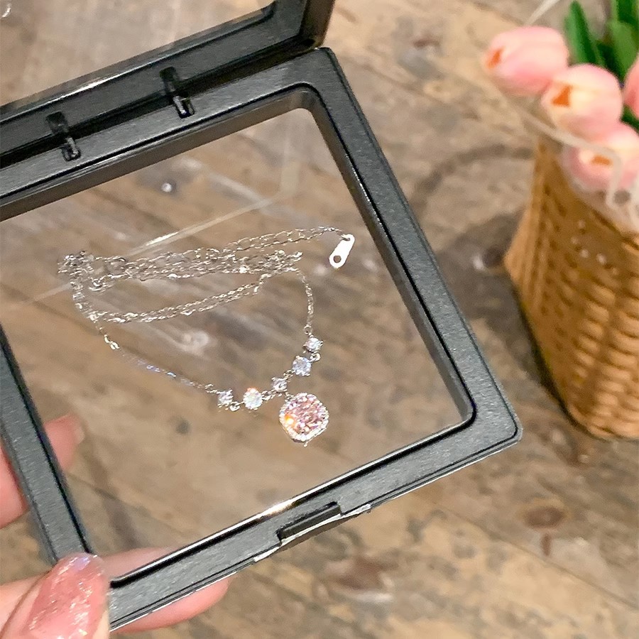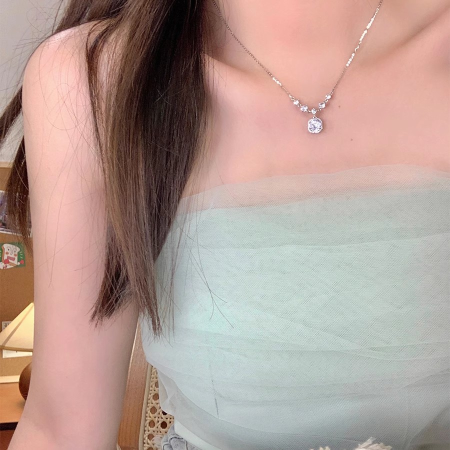 Titanium Steel Non Fading Light Luxury Square Diamond Necklace