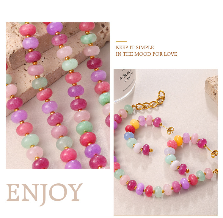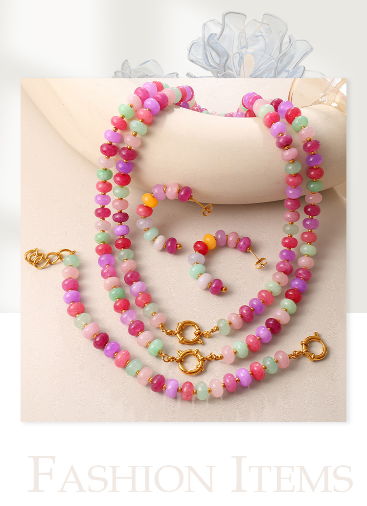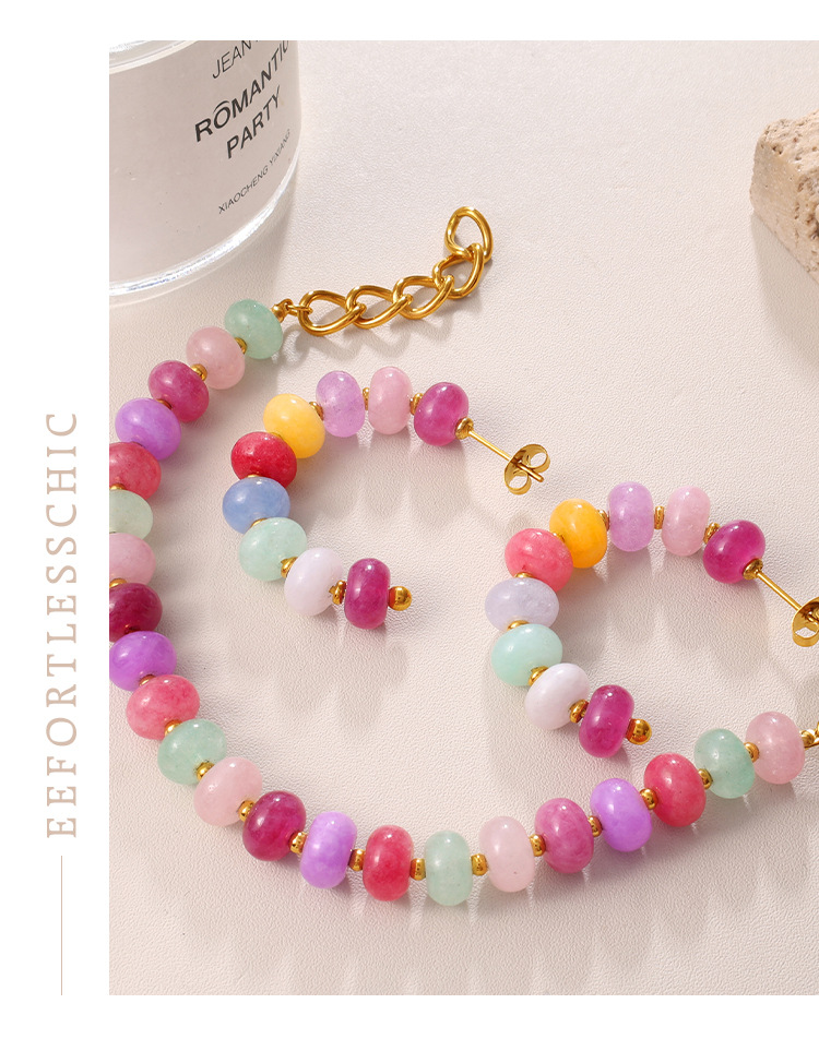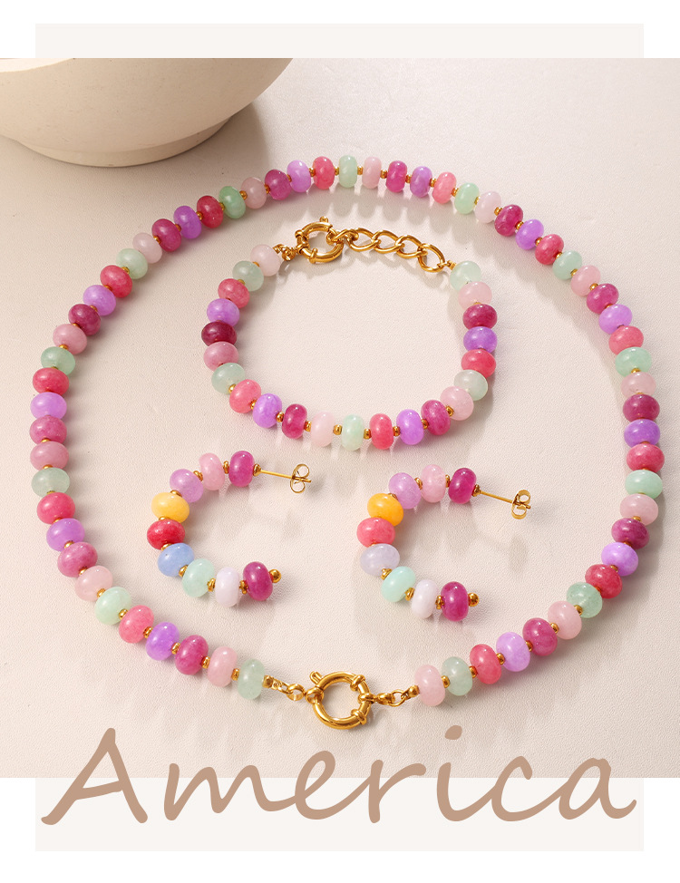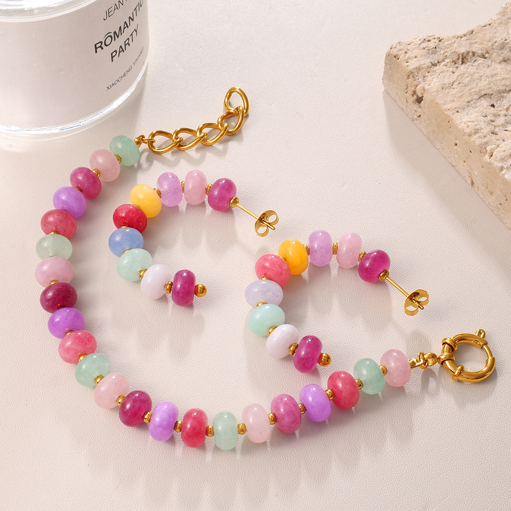 Irregular Colorful Beaded Earrings, Bracelet & Necklace Stainless Steel Vacation Style Dopamine Light Luxury Jewelry Set
