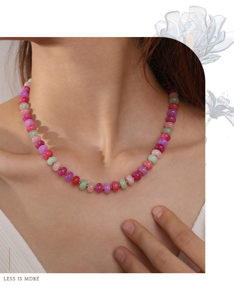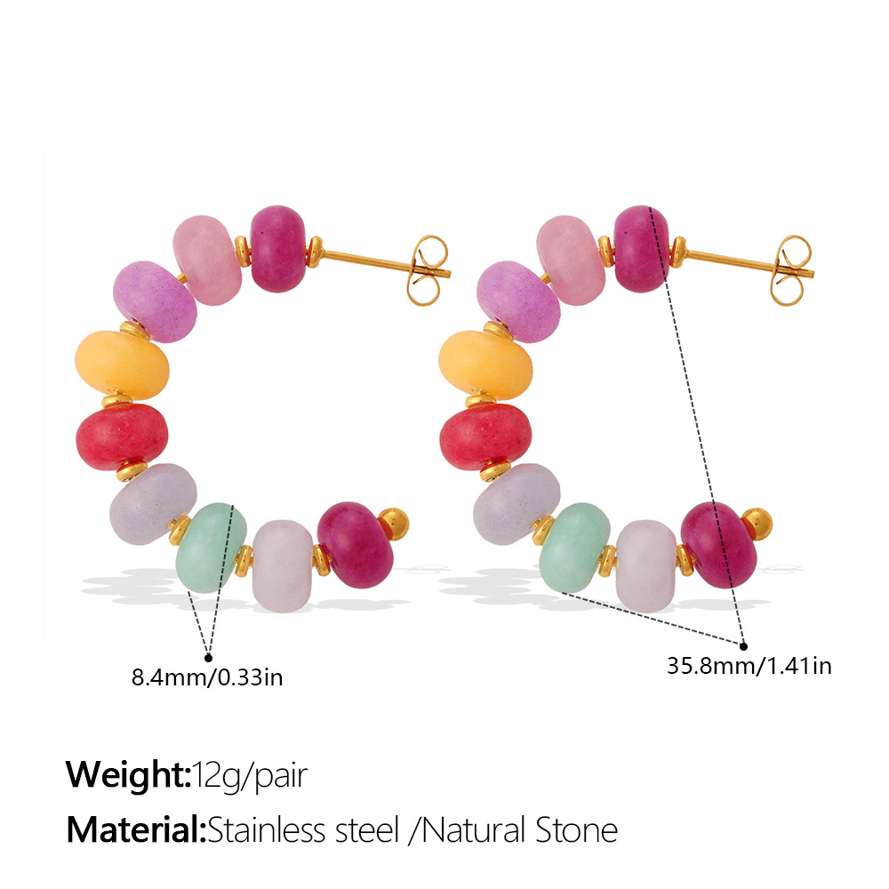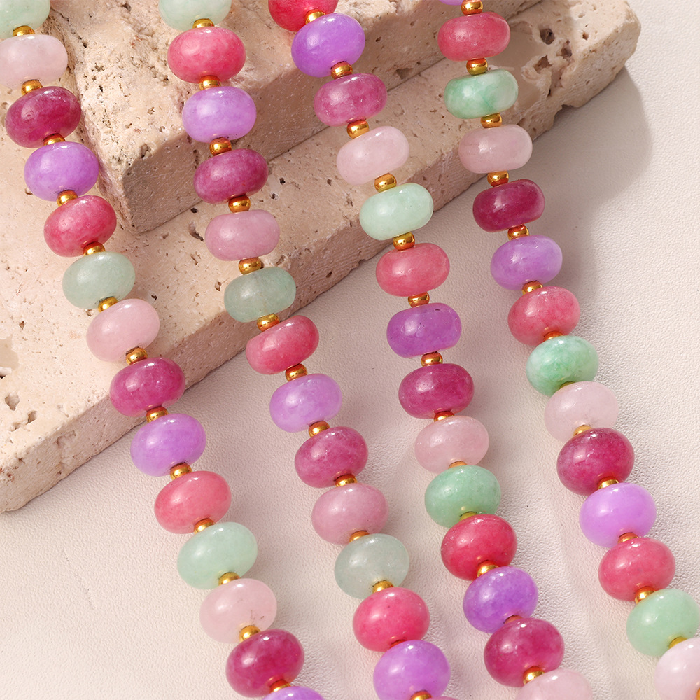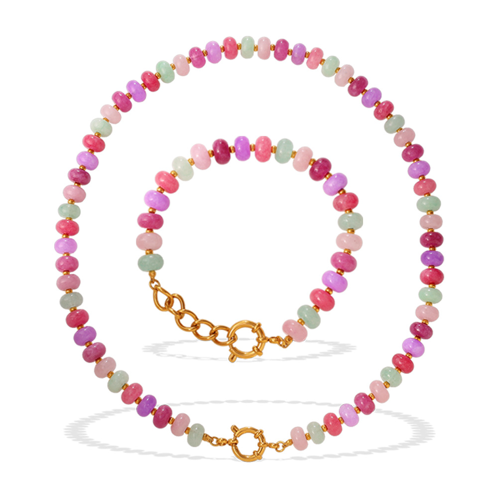 Irregular Colorful Beaded Earrings, Bracelet & Necklace Stainless Steel Vacation Style Dopamine Light Luxury Jewelry Set