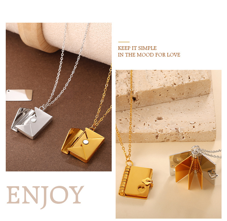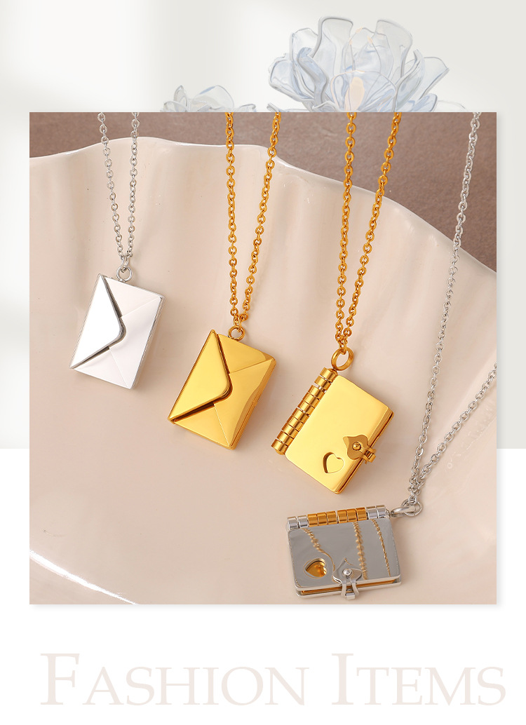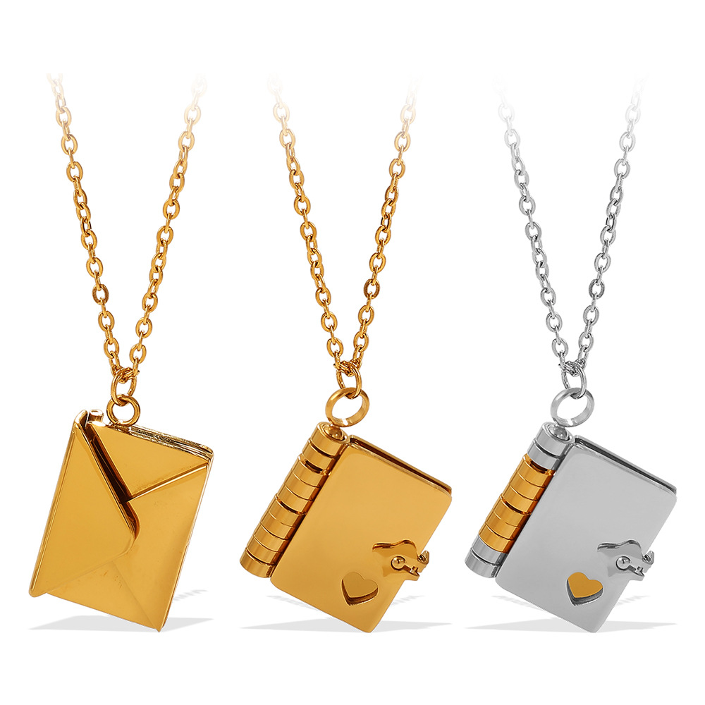 New Envelope Book Pendant Clavicle Necklace For Women, Minimalist Fashion Literary Style Necklace