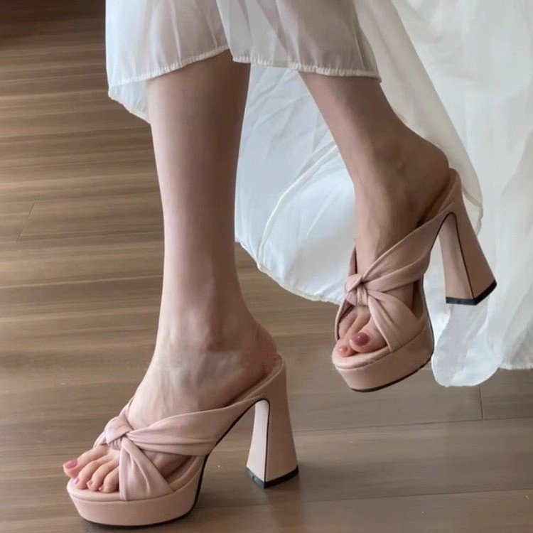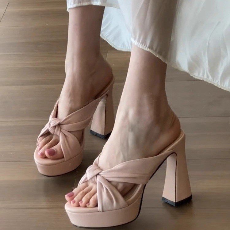 Heel height: high heelsBottom style: Thick heelSole Material: RubberStyle: T-shapedMaterial of upper: PUColor: Bare Pink