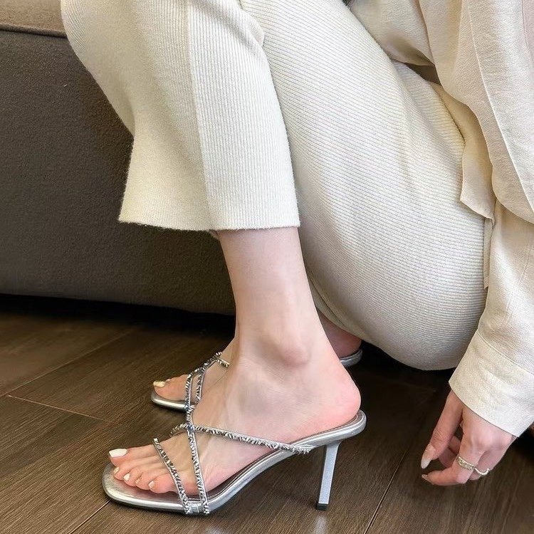 Temperament Water Diamond Fine Heel Sandals French Fairy Style High Heels Women's Sandals