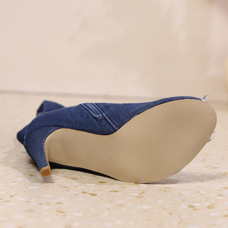 Closure: Side ZipperBoot Shaft Height: Tall BootsHeel Height: Ultra High Heel (>8cm)Boot Style: Fashion BootsSuitable Season: Spring & AutumnRelease Season: Summer 2026Toe Style: Pointed ToeHeel Type: Stiletto HeelOutsole Material: RubberBoot Inner Lining: FabricUpper Material: DenimShaft Material: DenimShaft Inner Lining: FabricPackaging Method: Please contact seller for confirmation