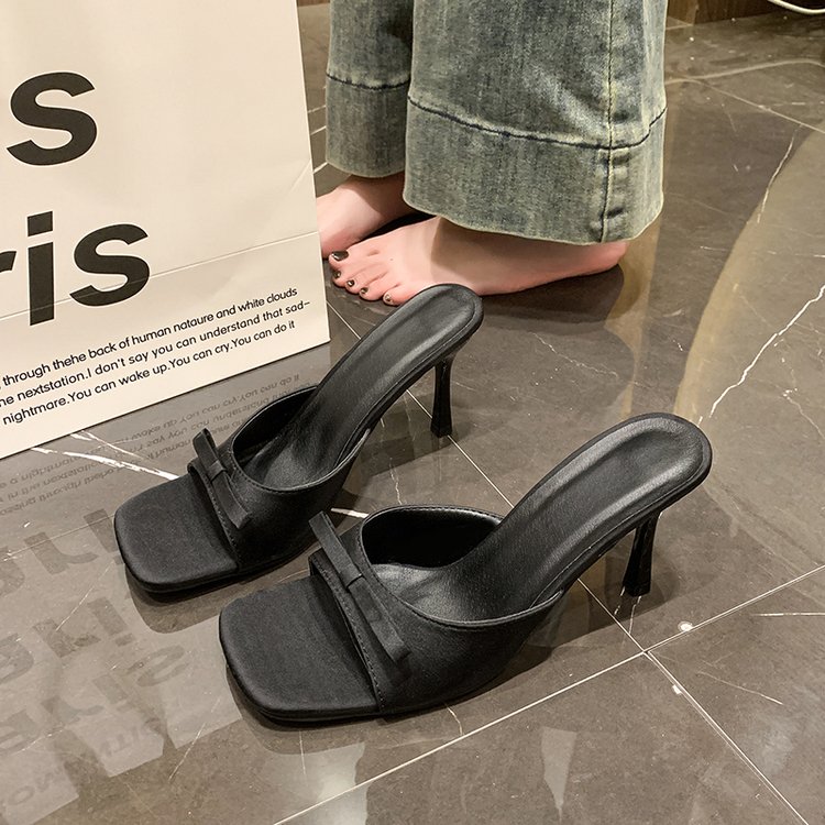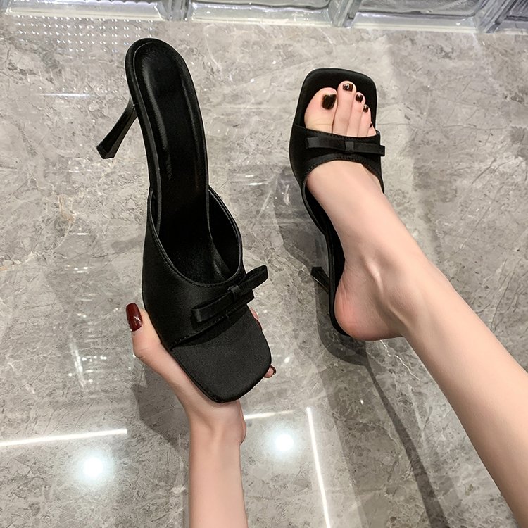 High Heels, Sandals, Women's Heads In A Straight Line, High-end Feel, Worn With Thin Heels And Bow Ties