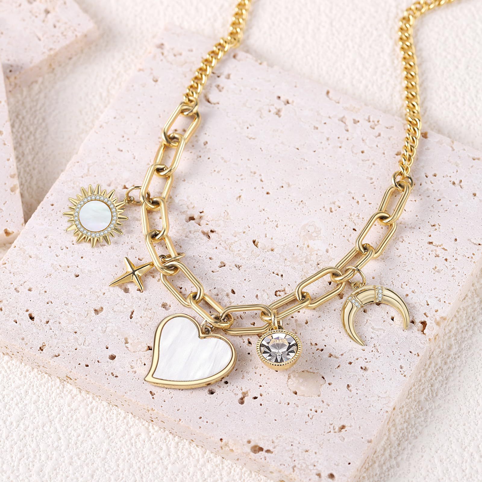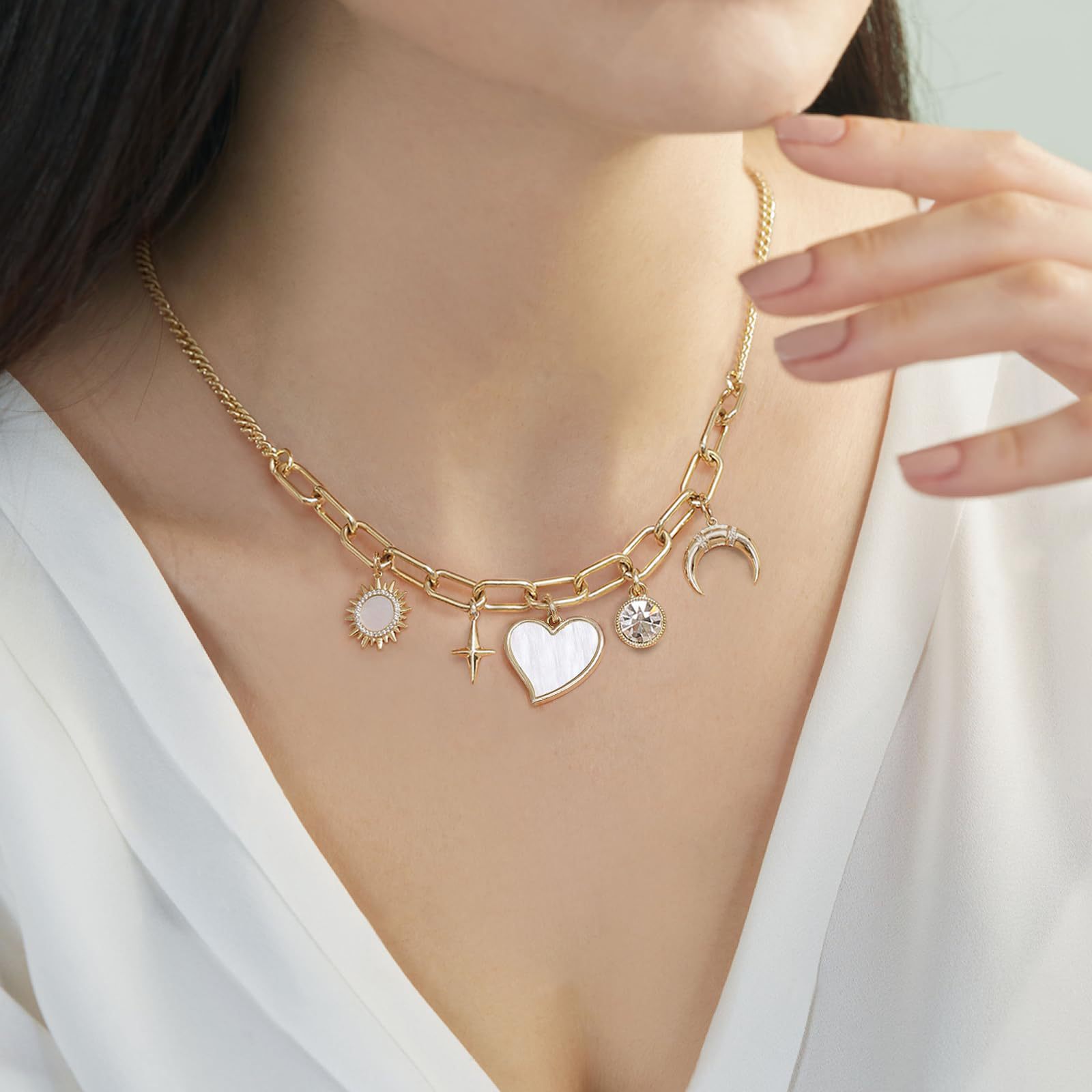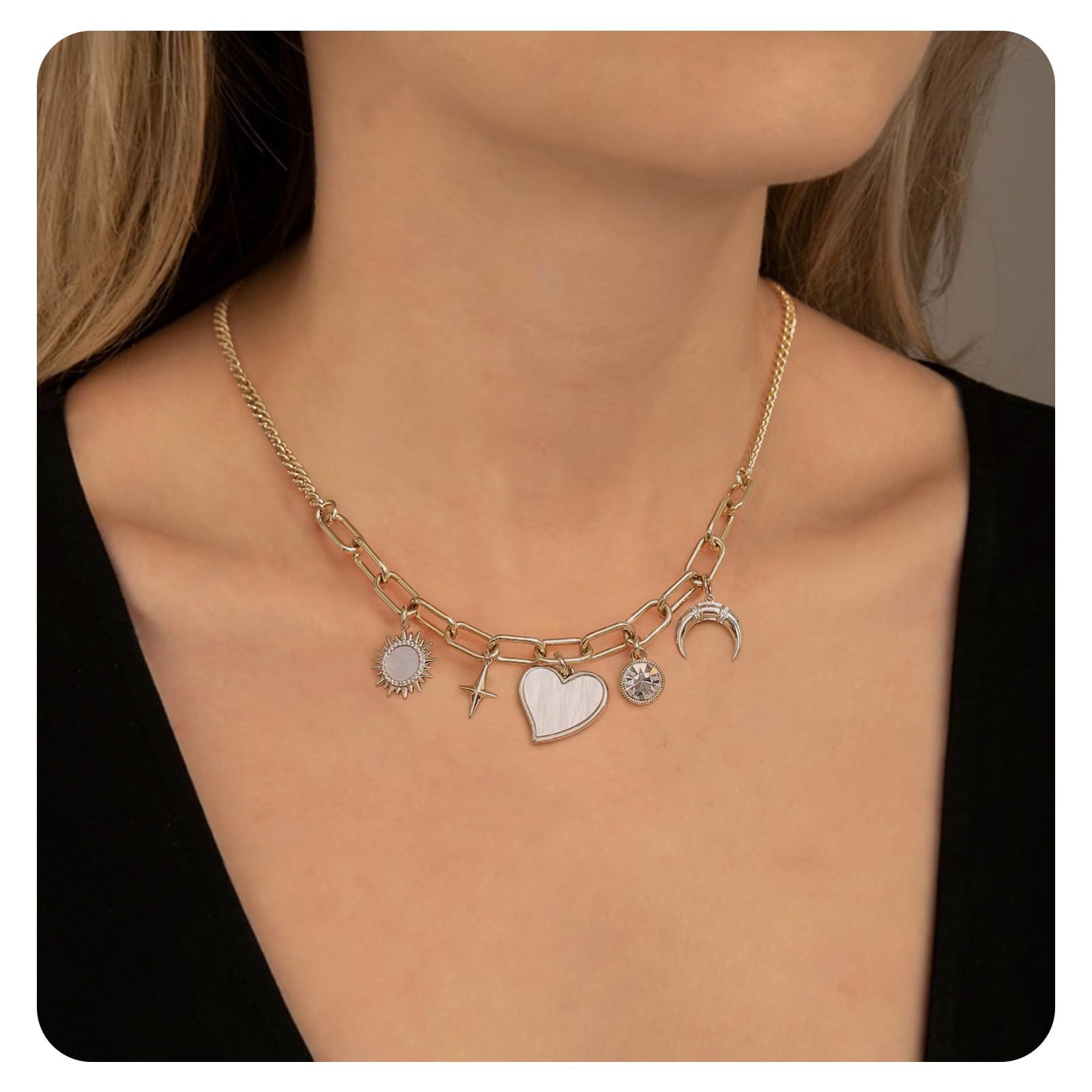 Product information:Color: GoldApplicable people: womenPendant material: AlloyChain style: bamboo necklaceMaterial: AlloyShape: heart shape, star shapePopular elements: Sun, love/heartStyle: fashion OL