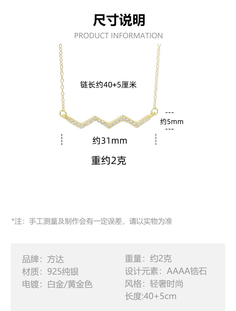 Material: 925 silverProcessing technology: zircon inlayChain Style: Cross ChainPendant material: 925 silverPopular elements: linesShape: WaveColor: White Gold, Gold