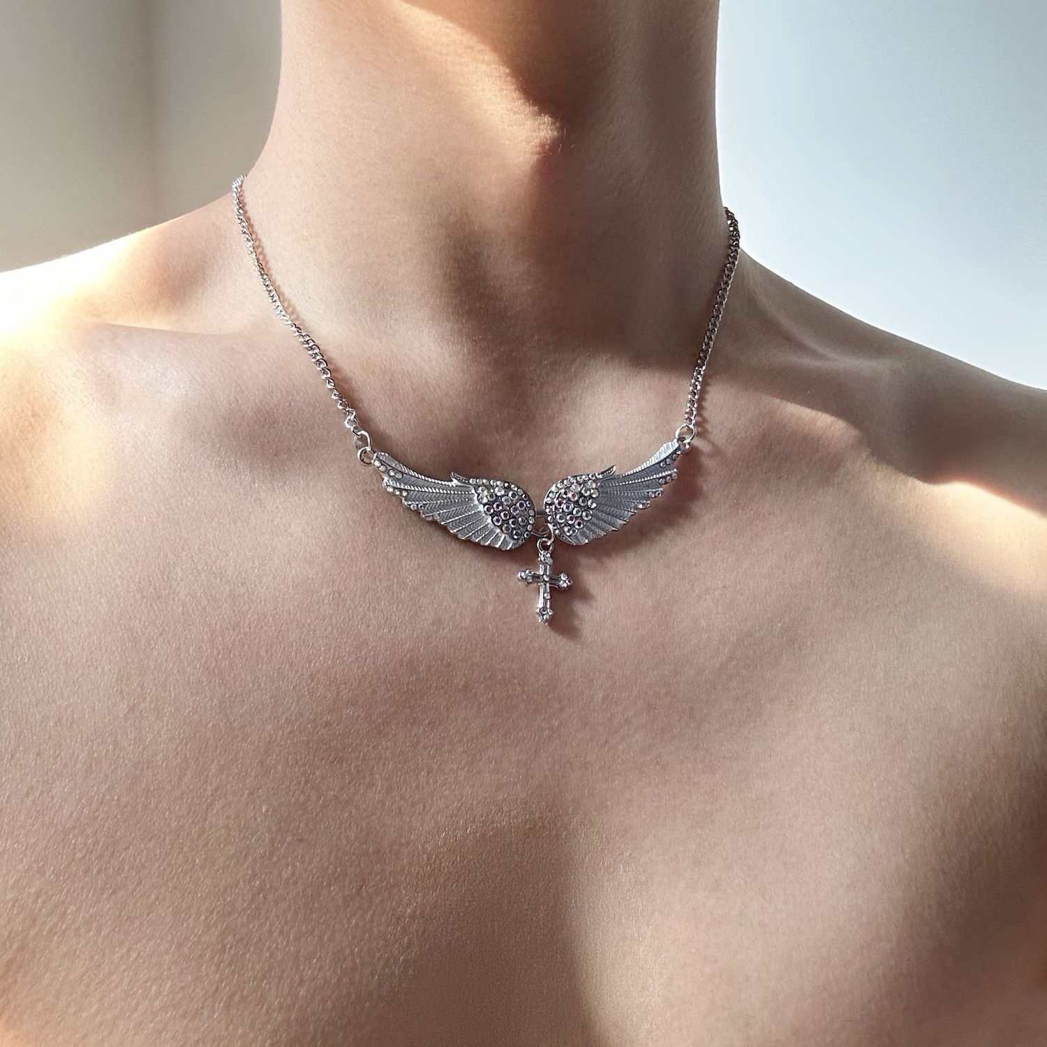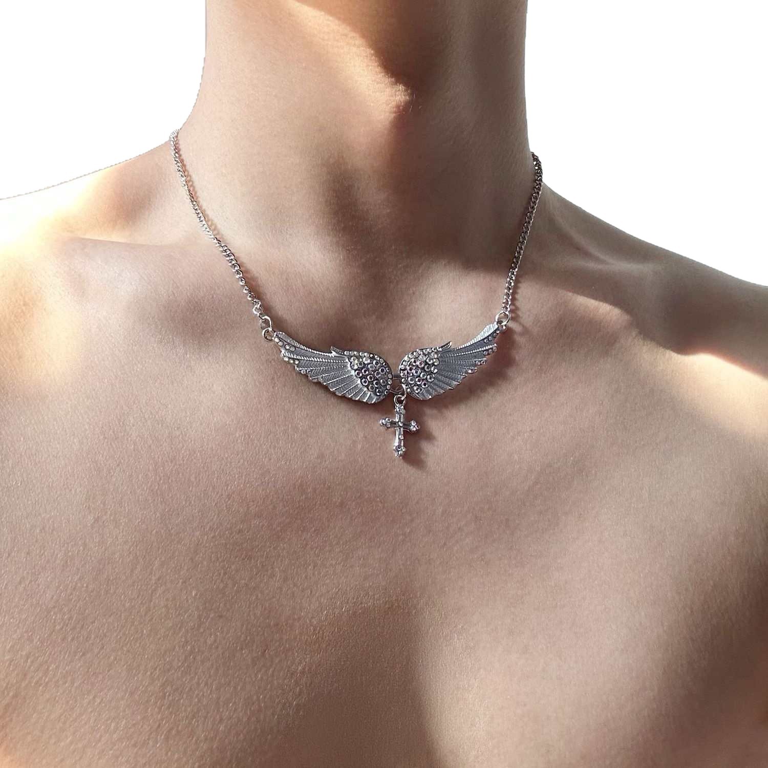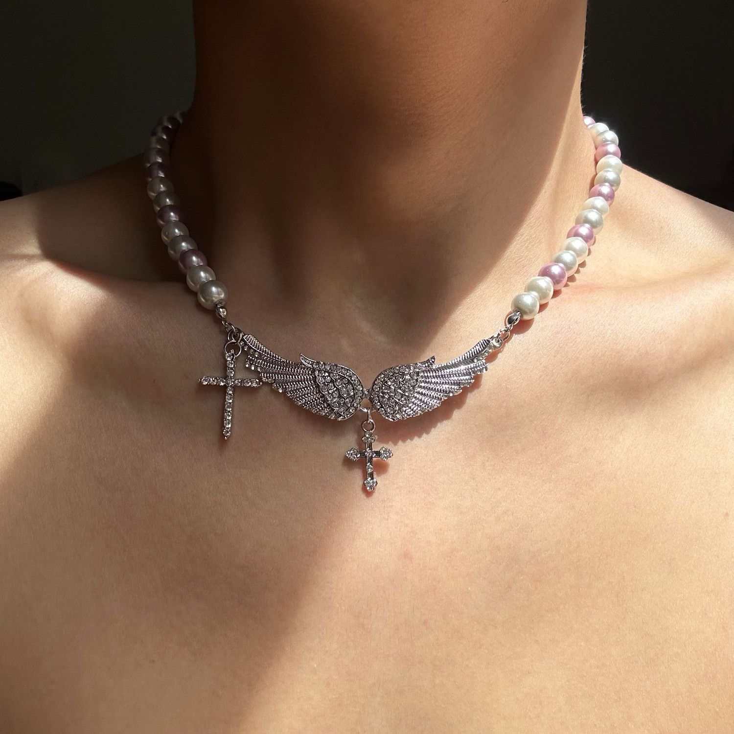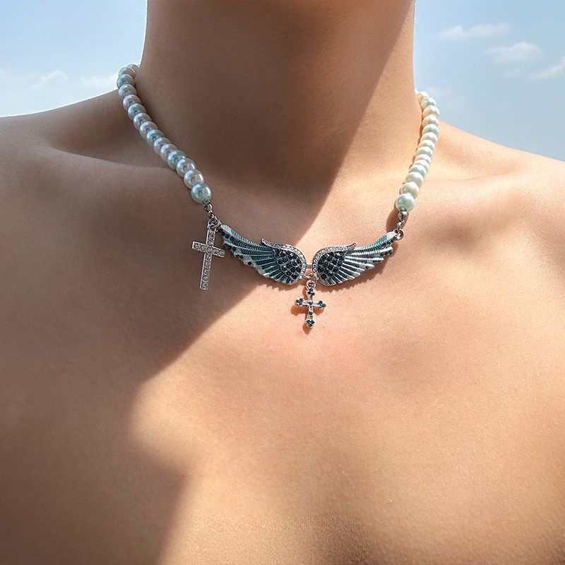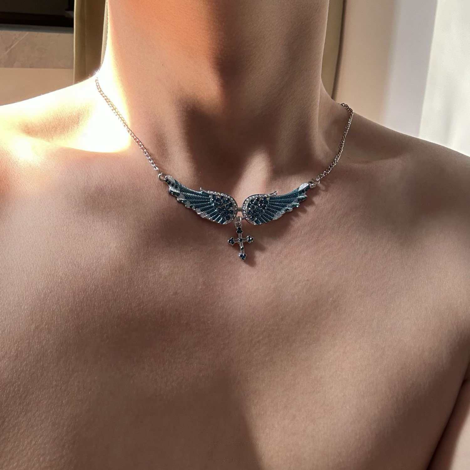 Colors: Pearl Silver Angel Wings, Pearl Blue Angel, Silver Necklace Angel Wings, Blue Necklace Angel Wings