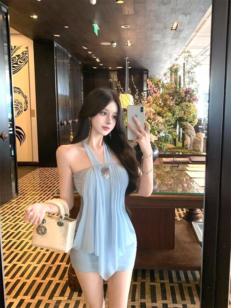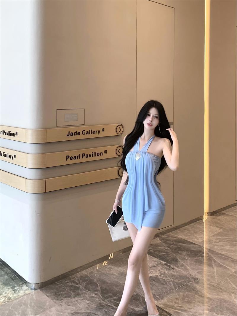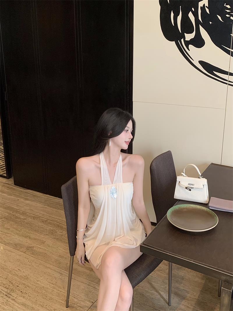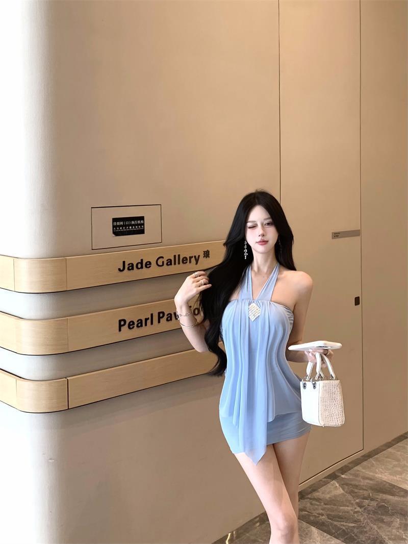 Product information:Fabric Name: Mesh Color: Blue, Apricot Sleeve Style: Sleeveless Sizes: S, M, L, XL Sleeve Length: Sleeveless Dress Category: One-Piece Dress