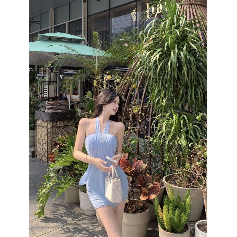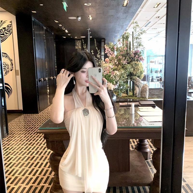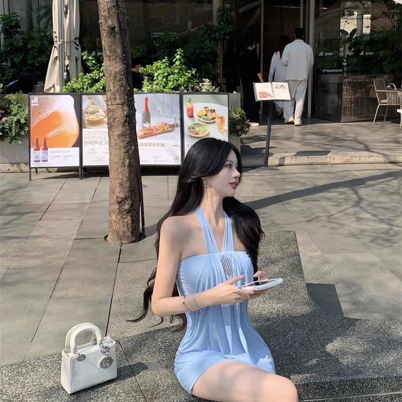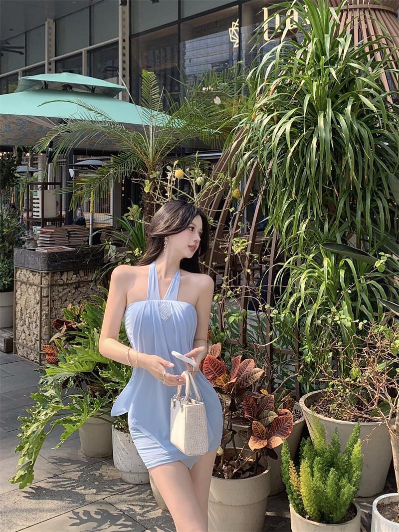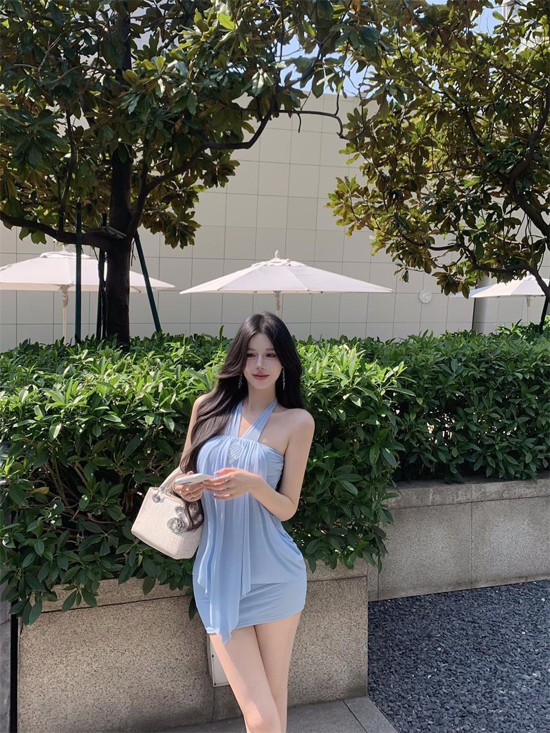 Product information:Fabric Name: Mesh Color: Blue, Apricot Sleeve Style: Sleeveless Sizes: S, M, L, XL Sleeve Length: Sleeveless Dress Category: One-Piece Dress