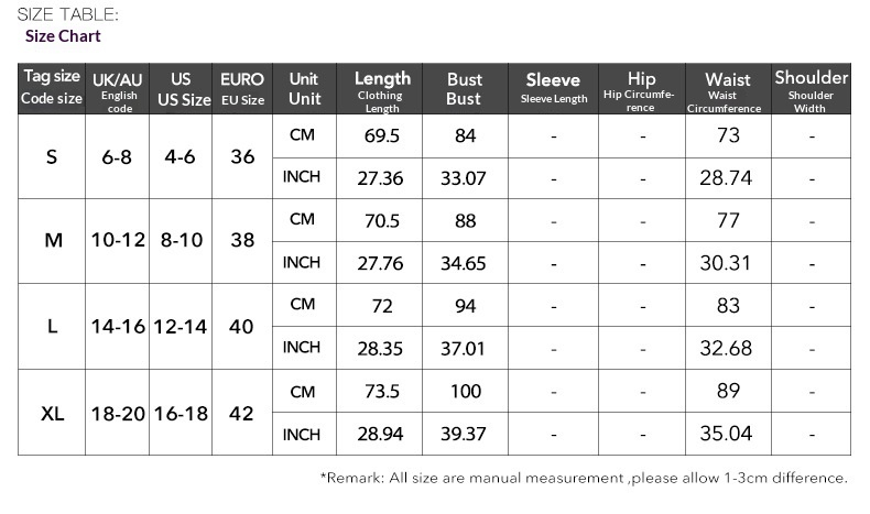 1. Asian sizes are 1 to 2 sizes smaller than European and American people. Choose the larger size if your size between two sizes. Please allow 2-3cm differences due to manual measurement. 2. Please check the size chart carefully before you buy the item, if you don't know how to choose size, please contact our customer service. 3.As you know, the different computers display colors differently, the color of the actual item may vary slightly from the following images.