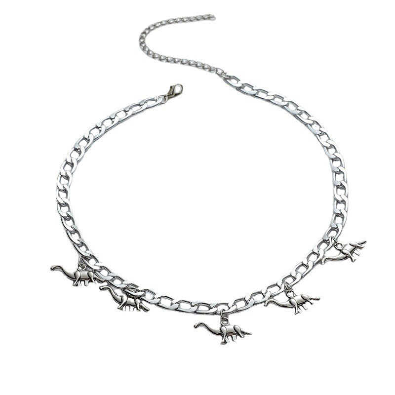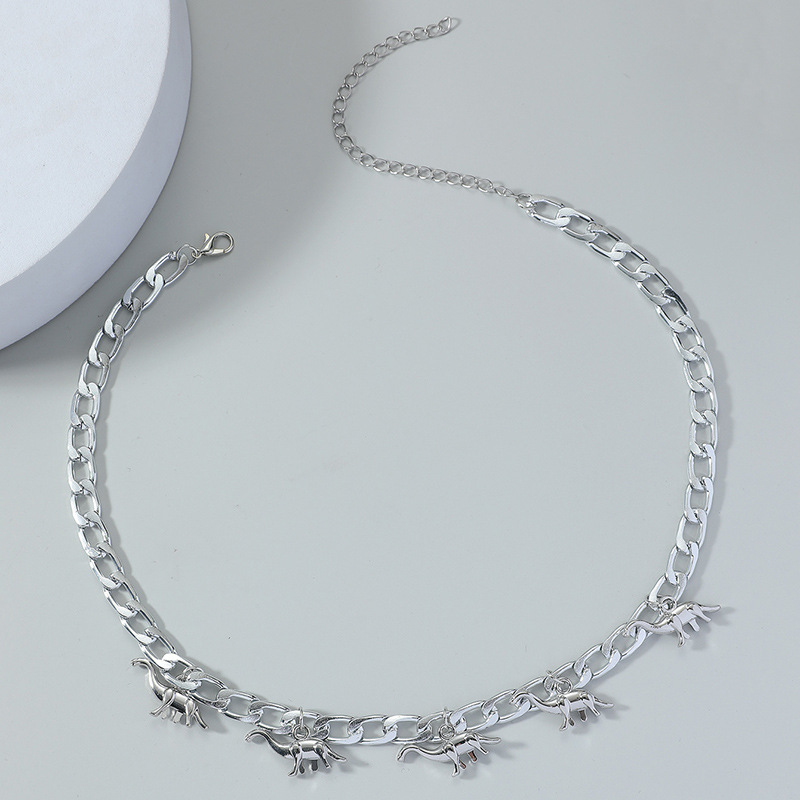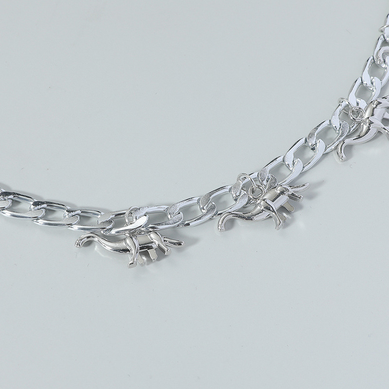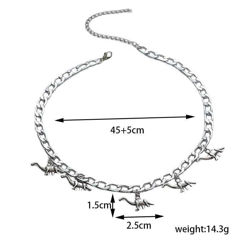 Product information:Color: Silver Pendant Material: Alloy Necklace Style: Cuban Chain Material: Alloy Trendy Element: Little Dinosaur Style: Internet Celebrity Style Length: 21 cm (inclusive) – 50 cm (inclusive)