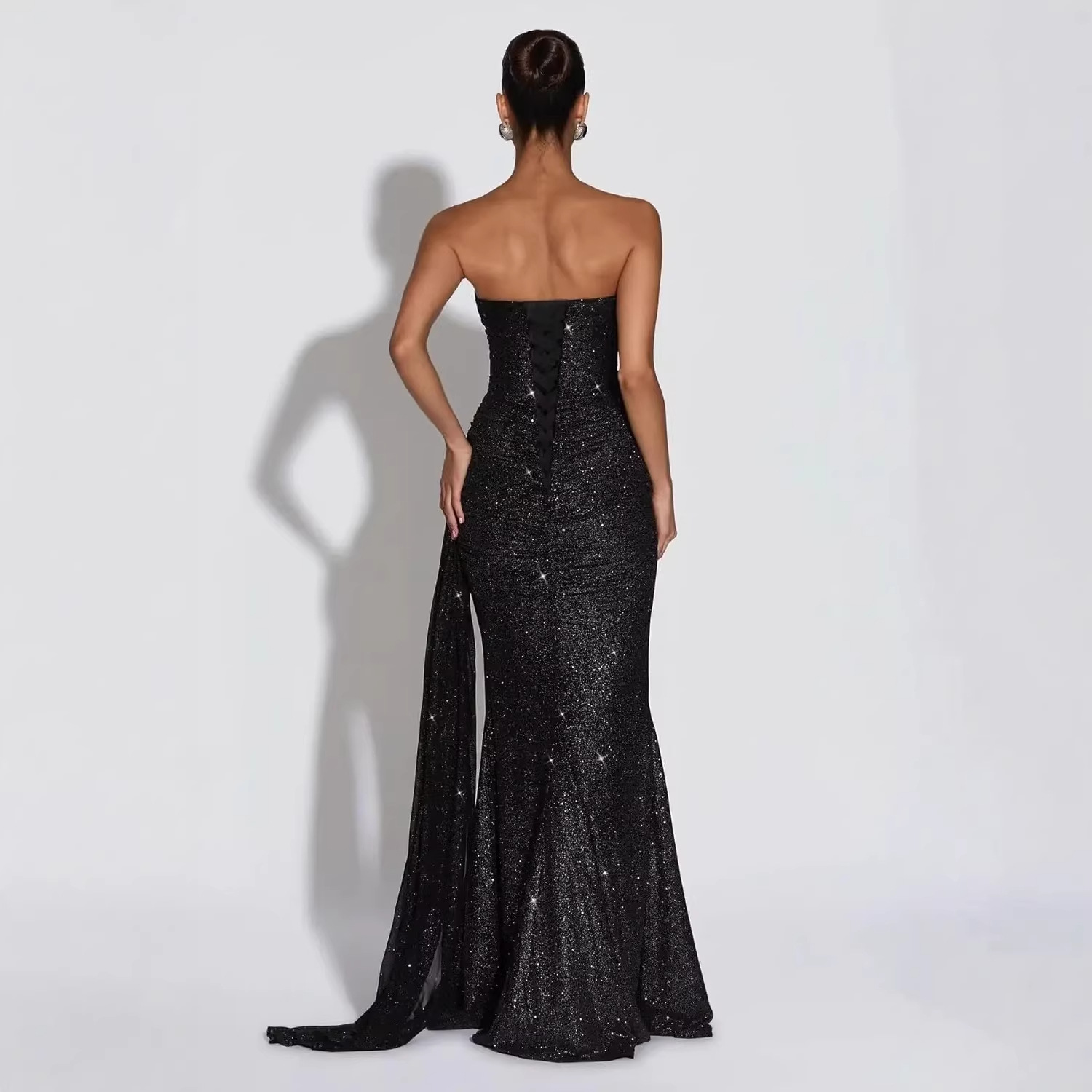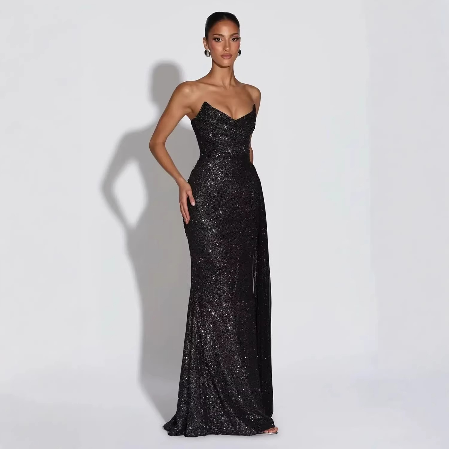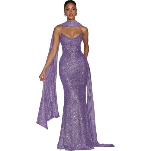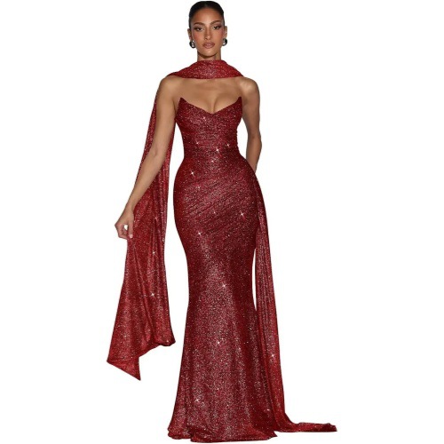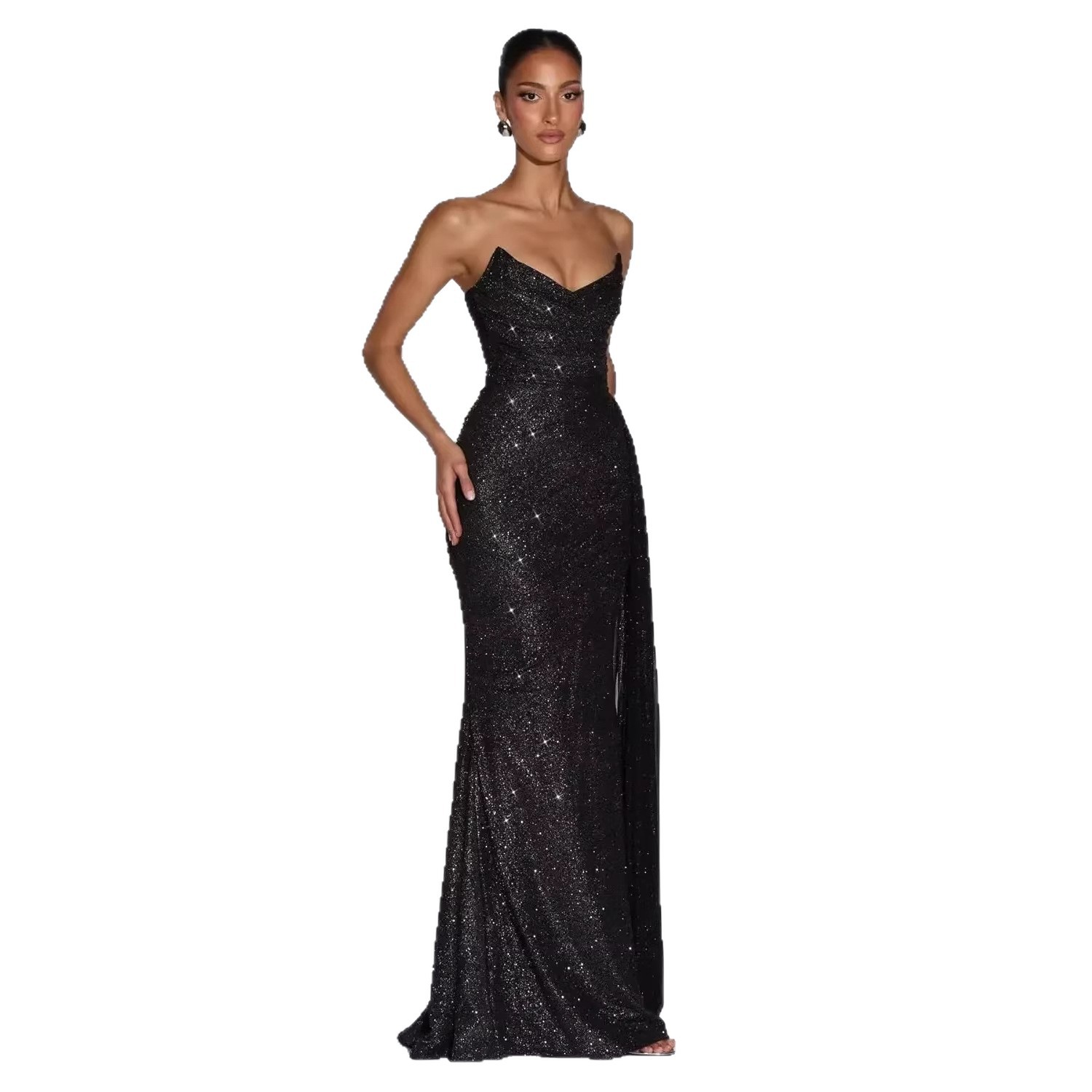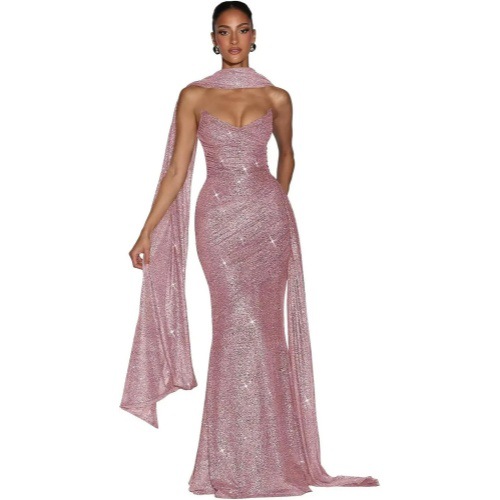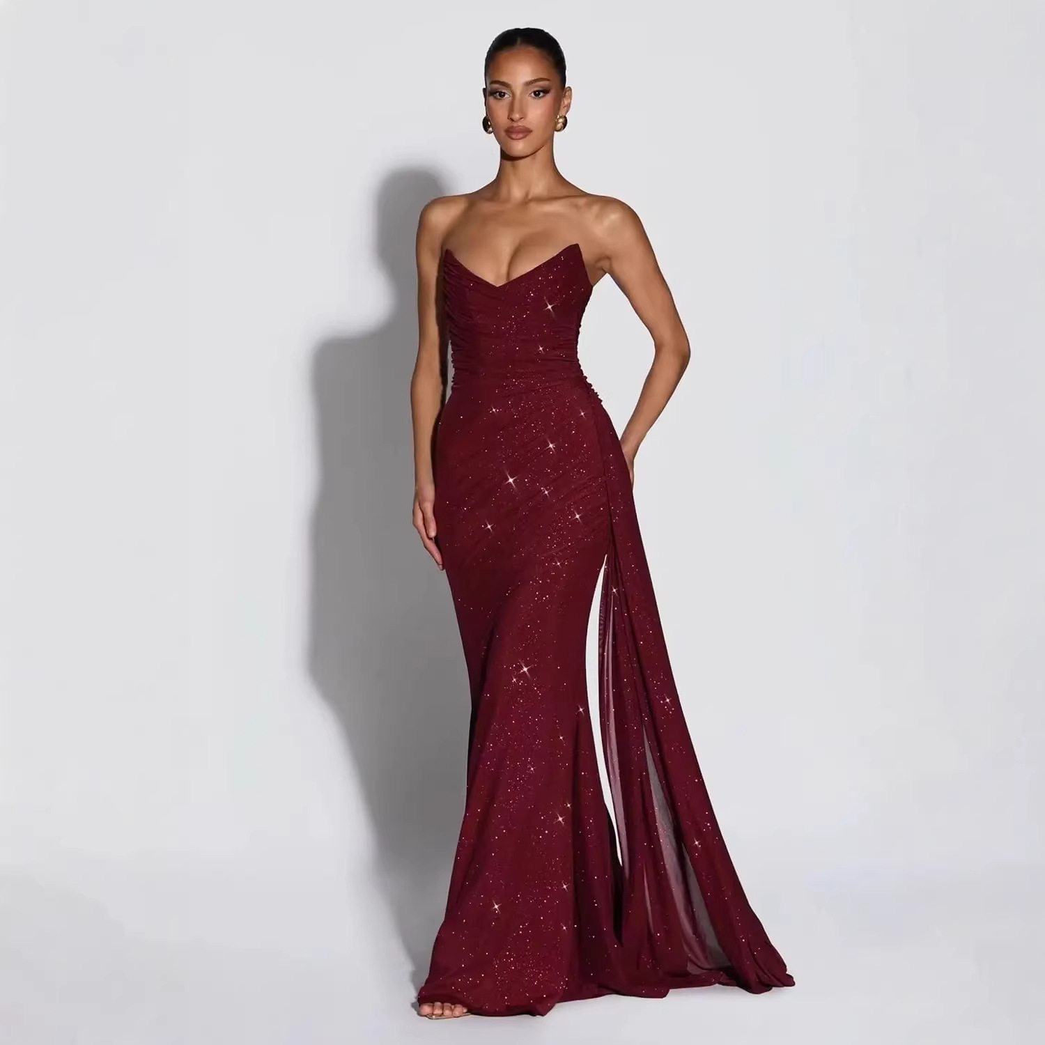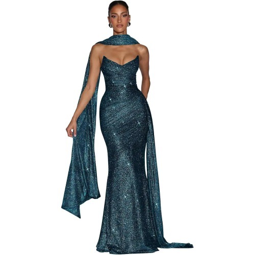 Features: Machine-embroidered sequin detailing, side slit design, body-hugging silhouette, ideal for weddings, formal events, and hosting occasions