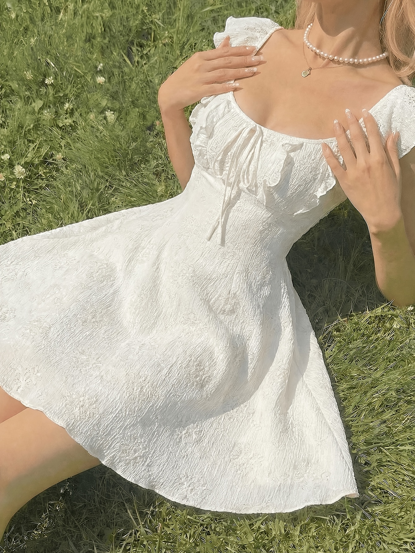 Women's New Summer French Style Romantic Elegant Ruffled Tie Waist Mini Dress Suitable for Going Out and Dating