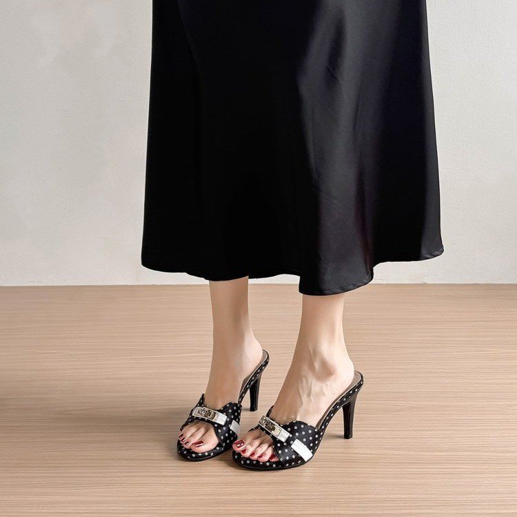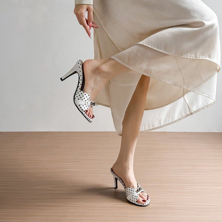Advanced Wave Point High Heels For Women, Slim Heels, Straight Strap, Round Toe Sandals