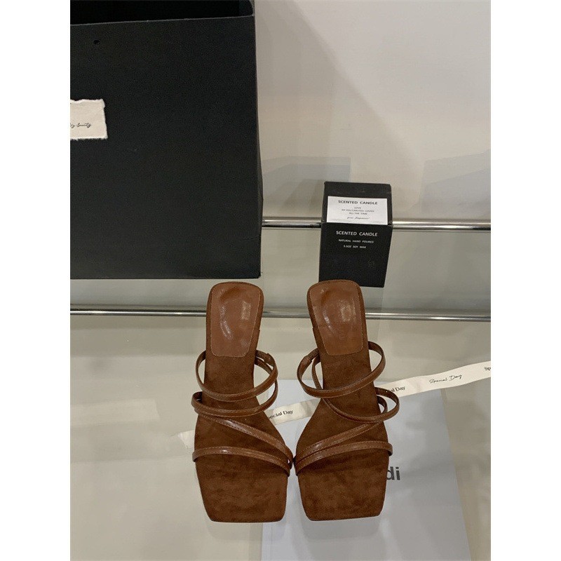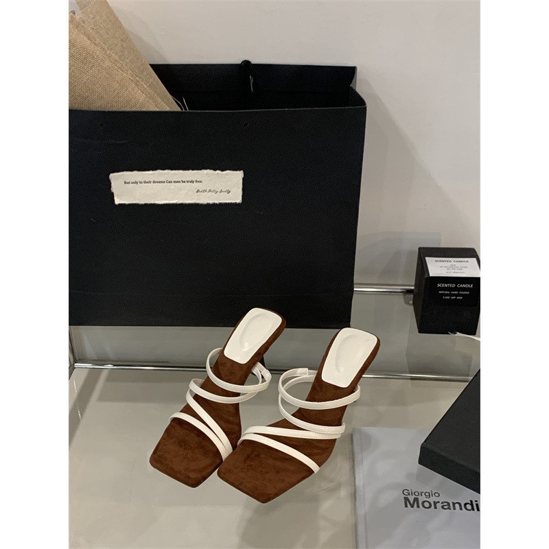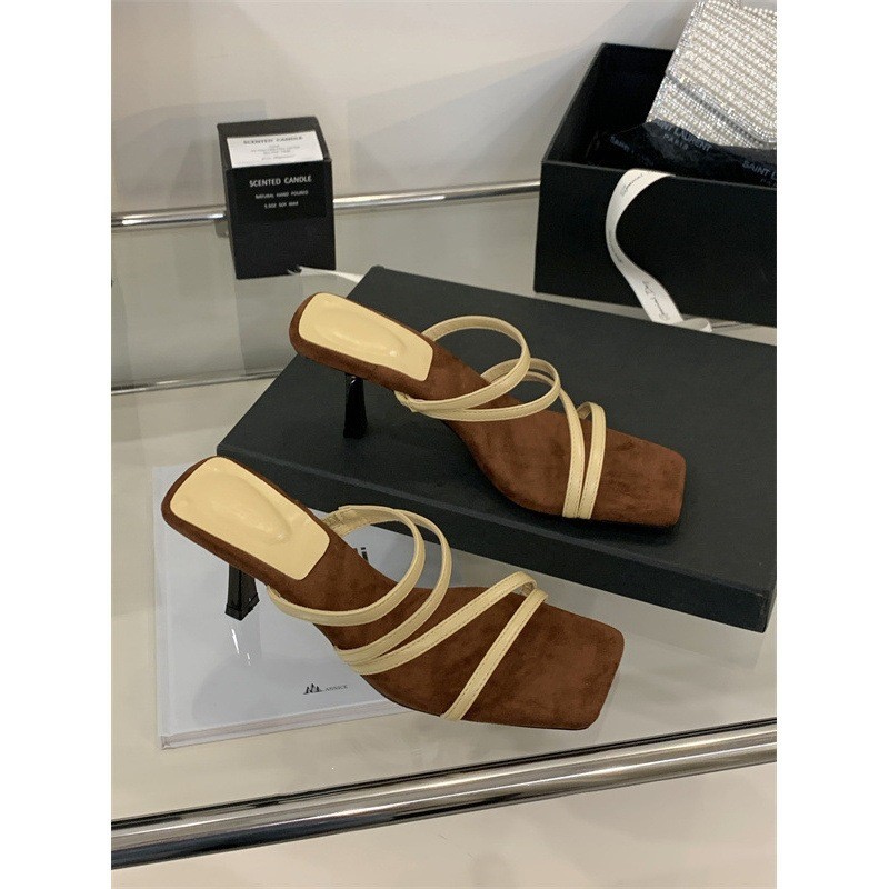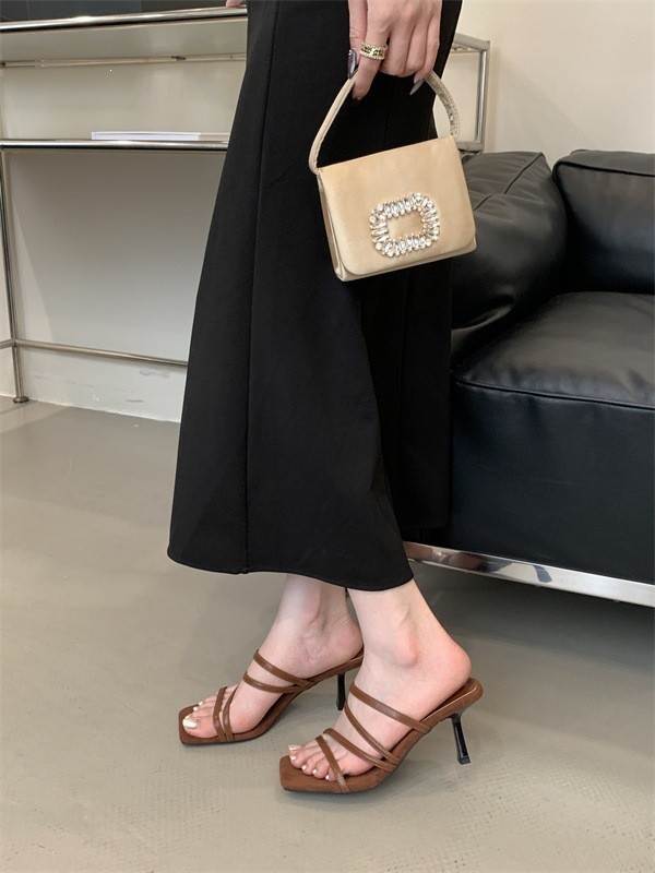 Fairy Style One-piece Toe Exposed Square Slippers For Women, French Style Exquisite High Heels, Cool Slippers