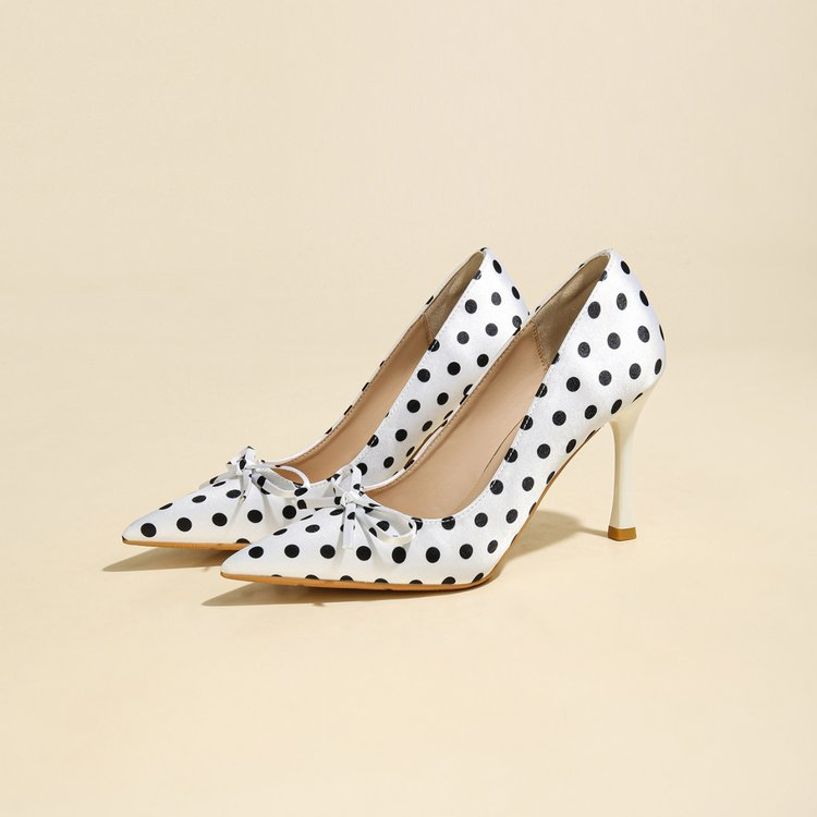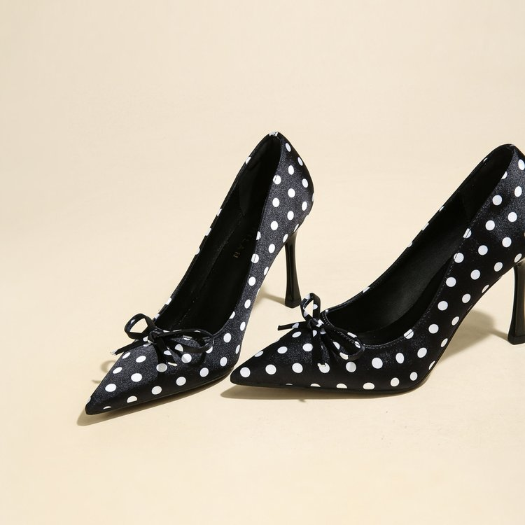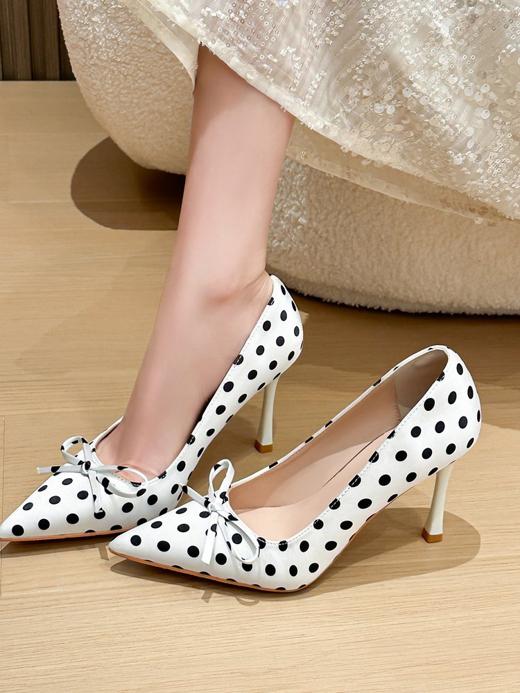 Fairy Style Pointed Toe Polka Dot Gentle Pumps For Women, French Style Soft Sole Stiletto High Heels Perfect With Dresses