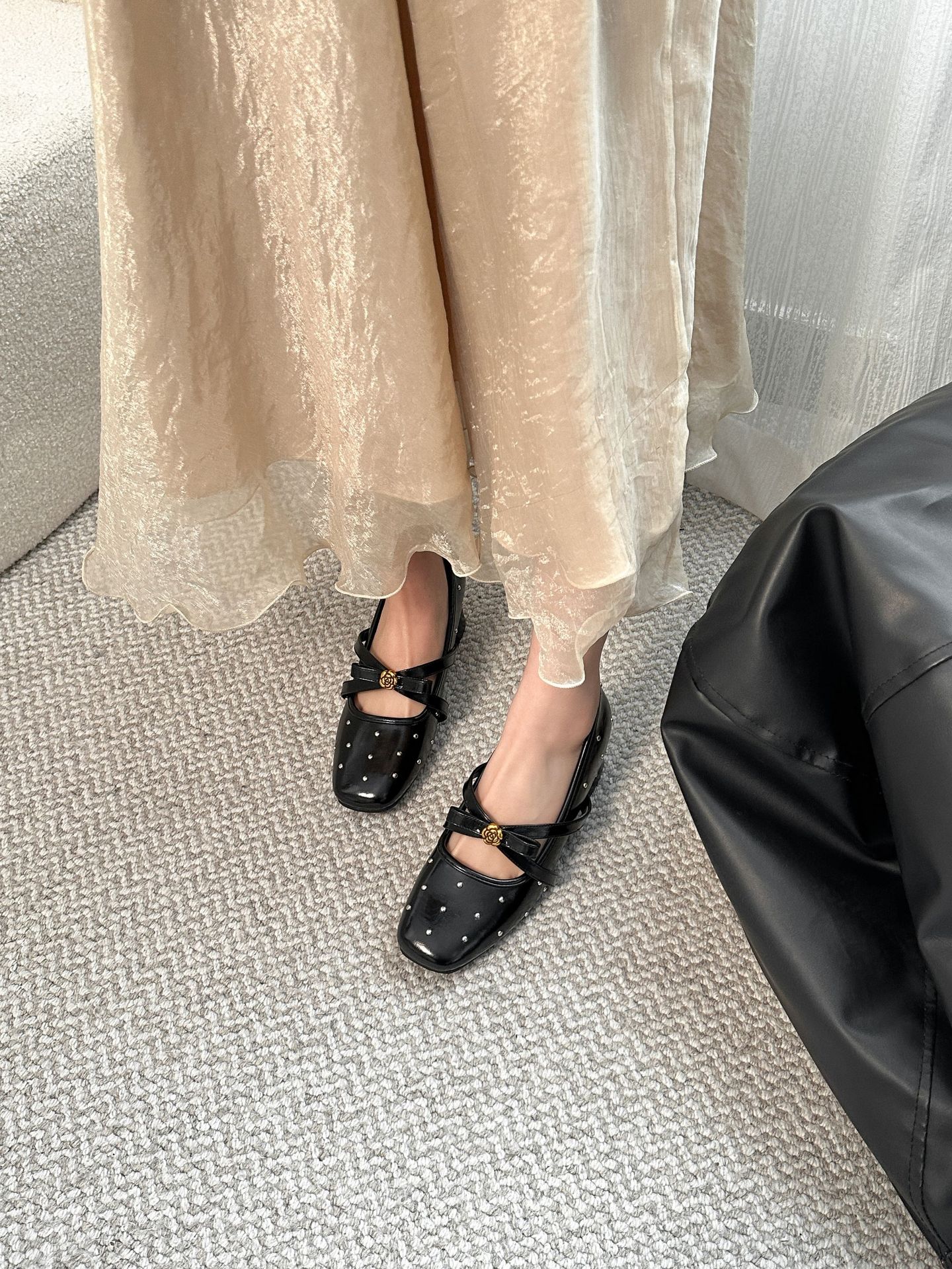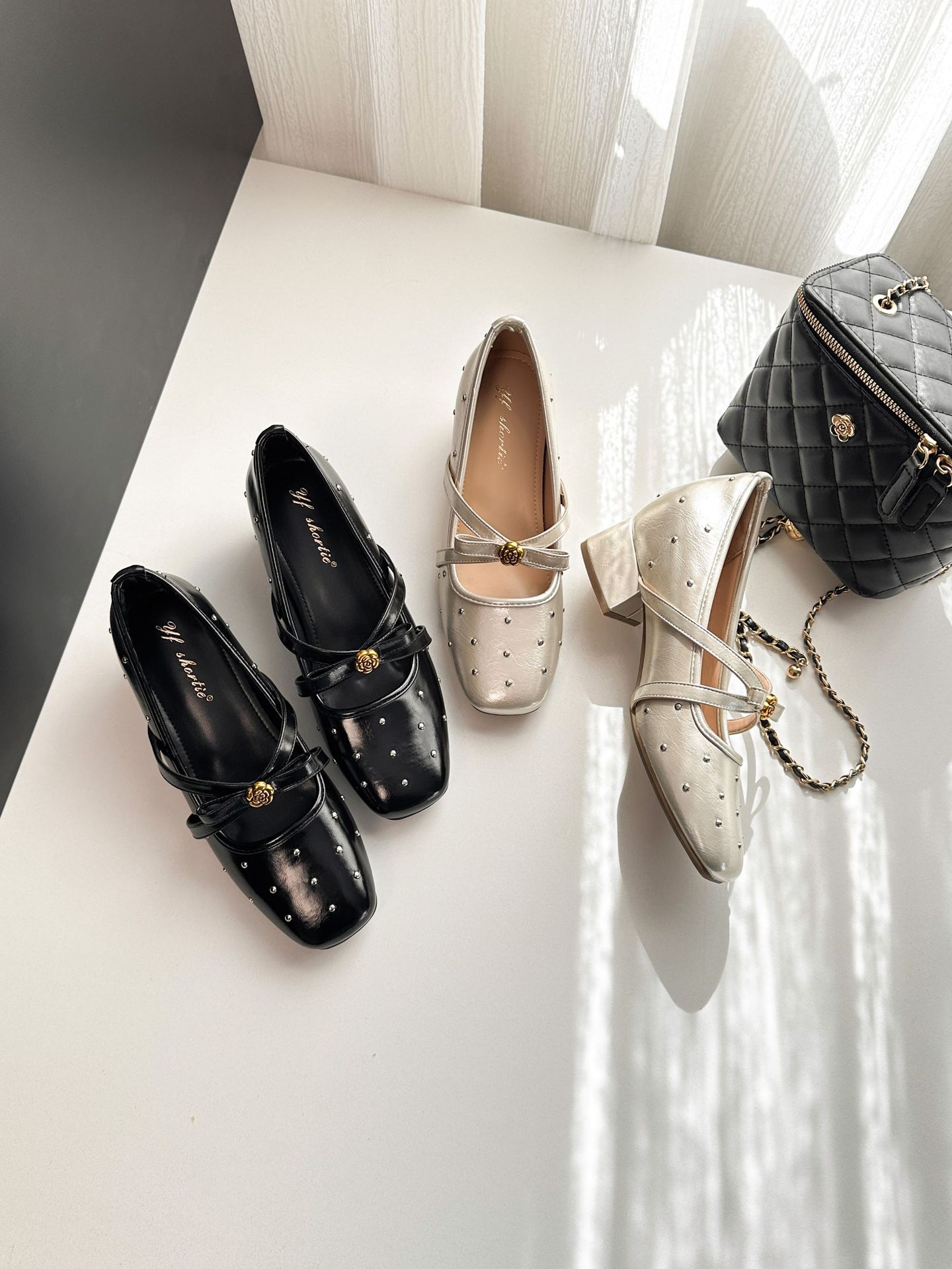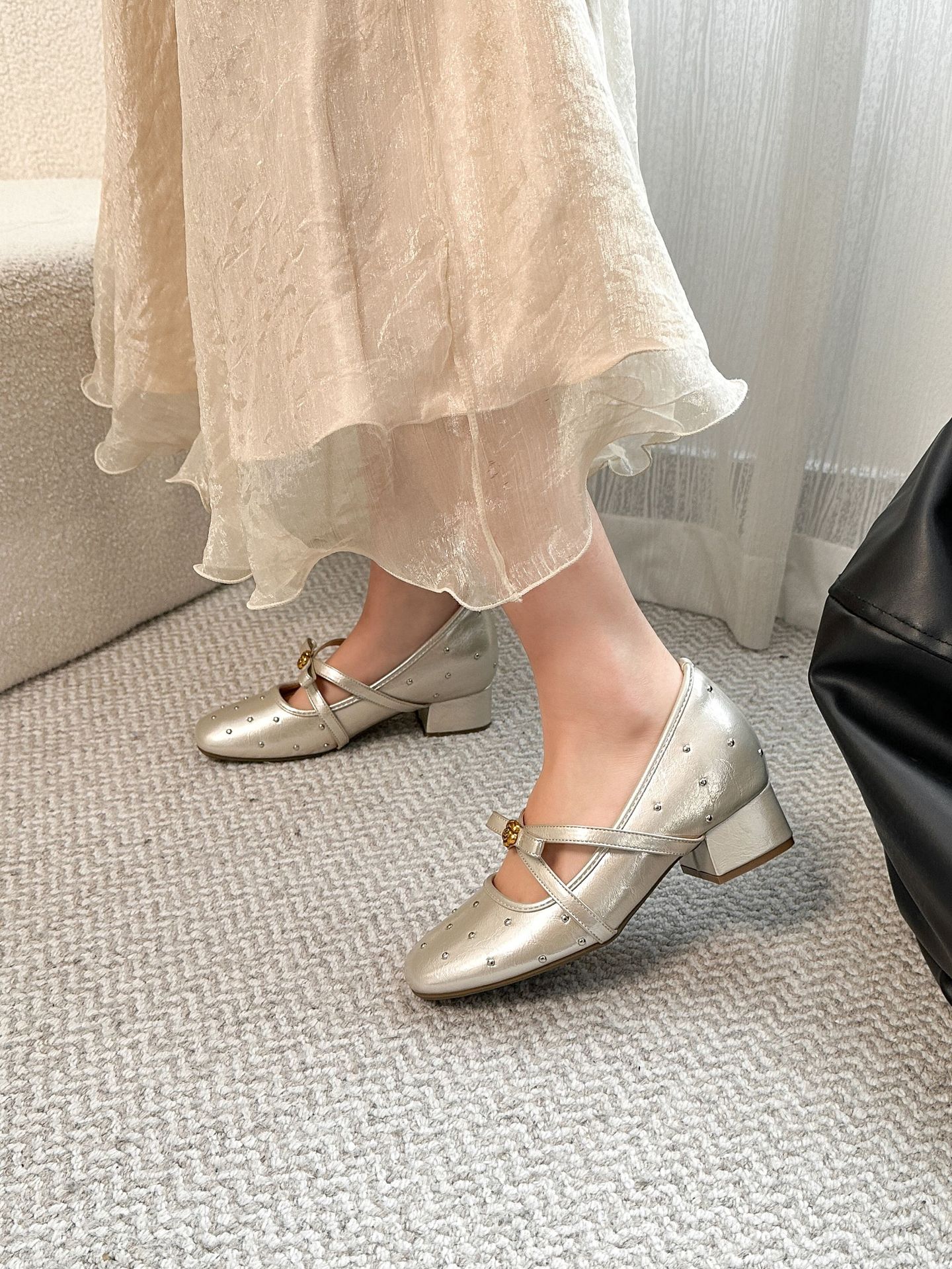 2026 Women's Camellia Metal Cross Strap Block Heel Pumps, Rhinestone Mary Jane Shoes