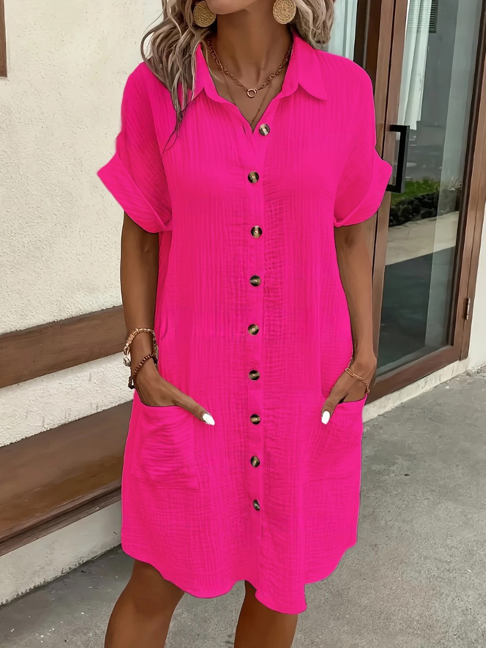 Solid Color Linen Cotton Button Down Loose Shirt Dress