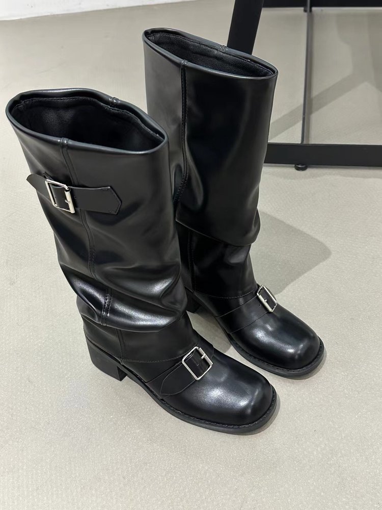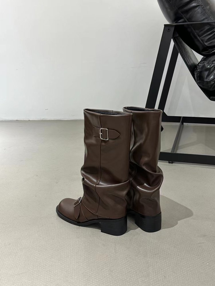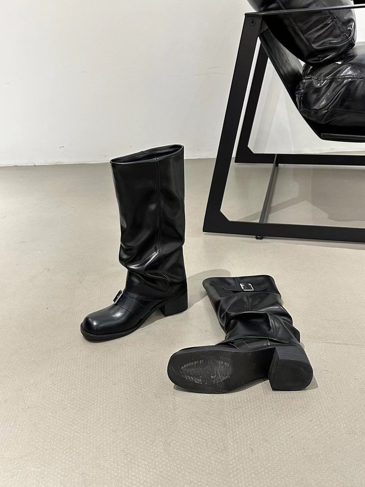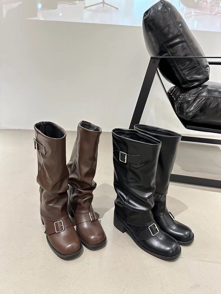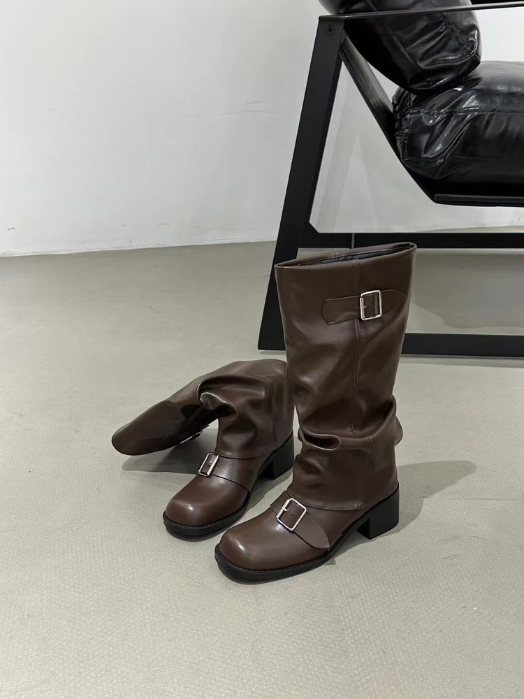 Product information:Pattern: Solid ColorLining Material: OtherColor: Black, Light BrownHeel Height: Mid Heel (3-5CM)Boot Shaft Height: High BootHeel Shape: Chunky HeelSize: 35, 36, 37, 38, 39, 40Sole Process: CementedSole Material: Rubber