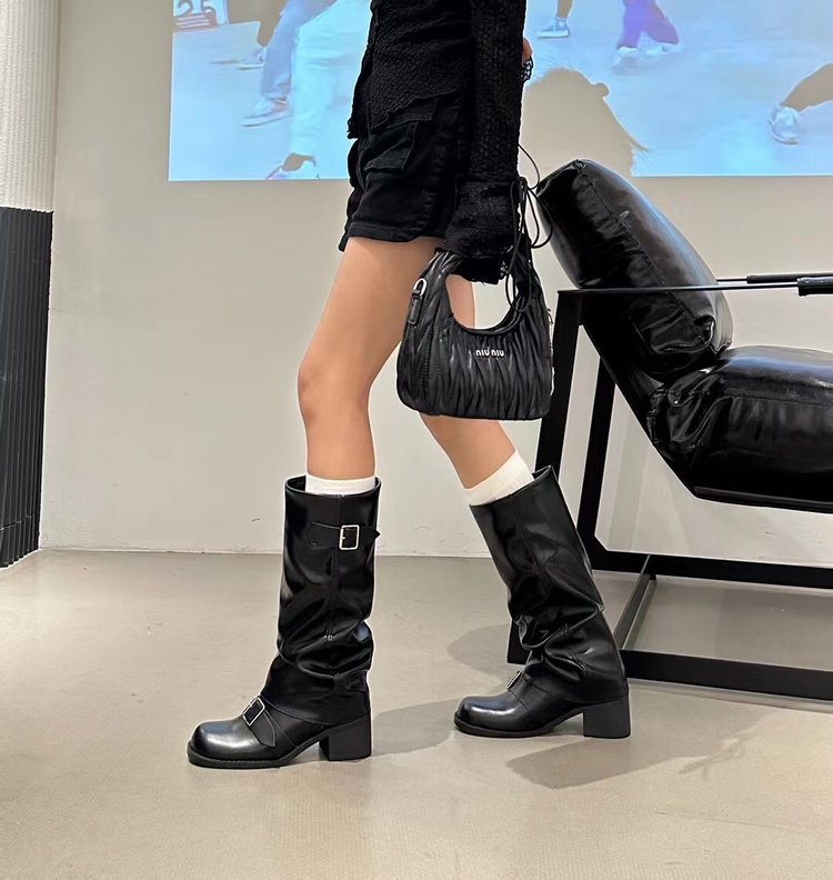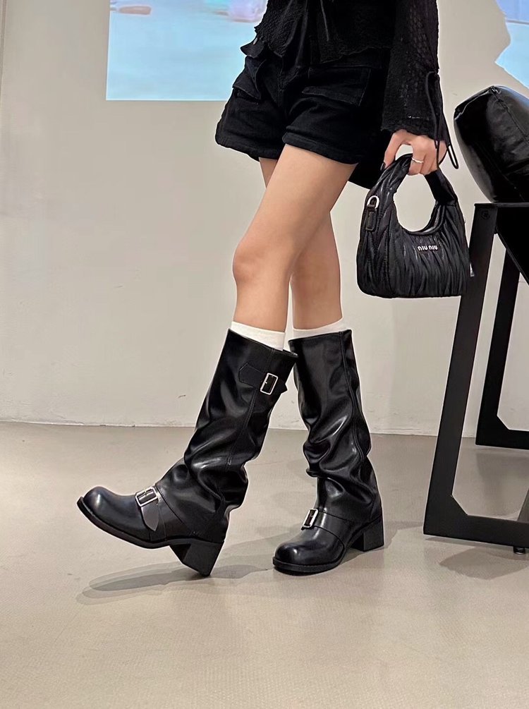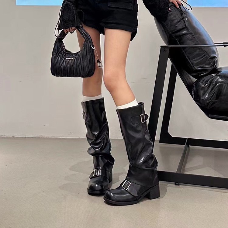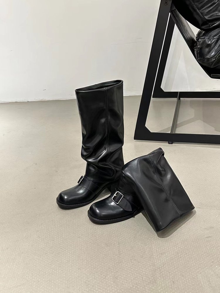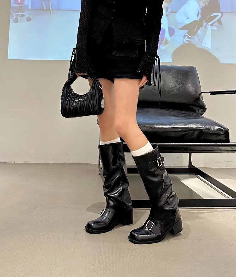 Product information:Pattern: Solid ColorLining Material: OtherColor: Black, Light BrownHeel Height: Mid Heel (3-5CM)Boot Shaft Height: High BootHeel Shape: Chunky HeelSize: 35, 36, 37, 38, 39, 40Sole Process: CementedSole Material: Rubber