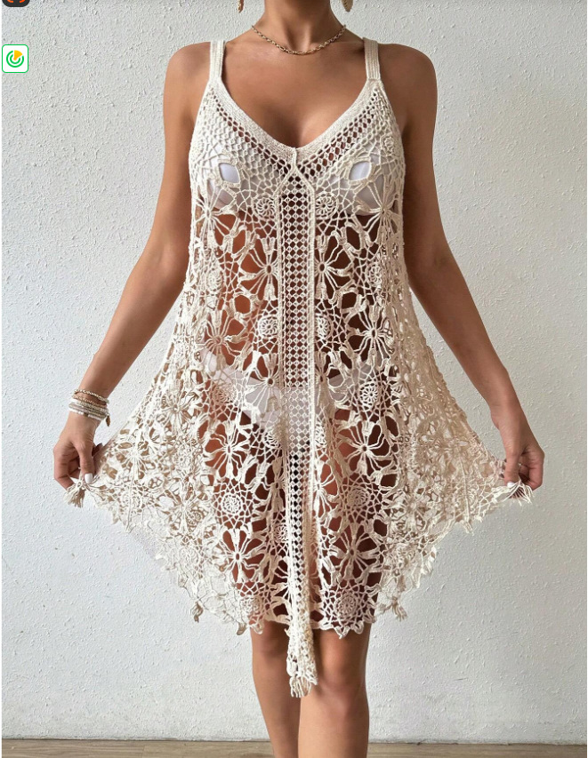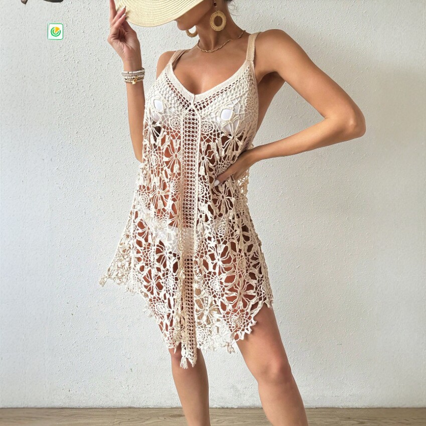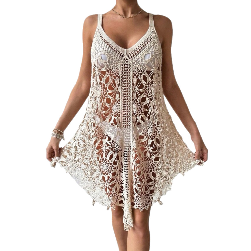 Fashionable Crochet Hollow-Out Beach Dress For Women