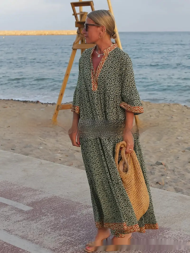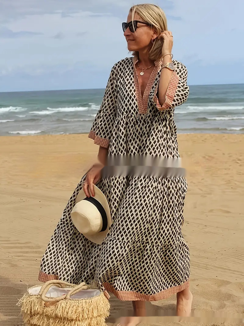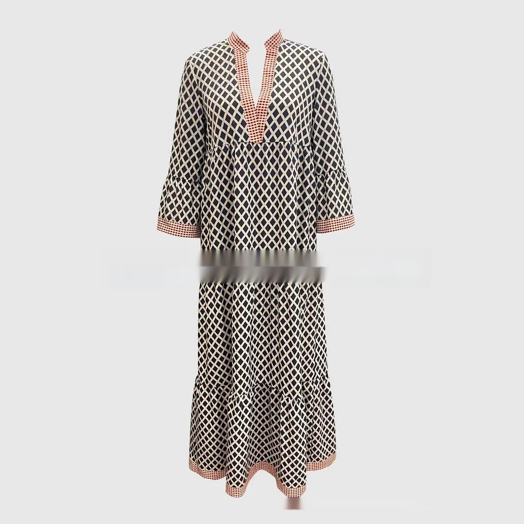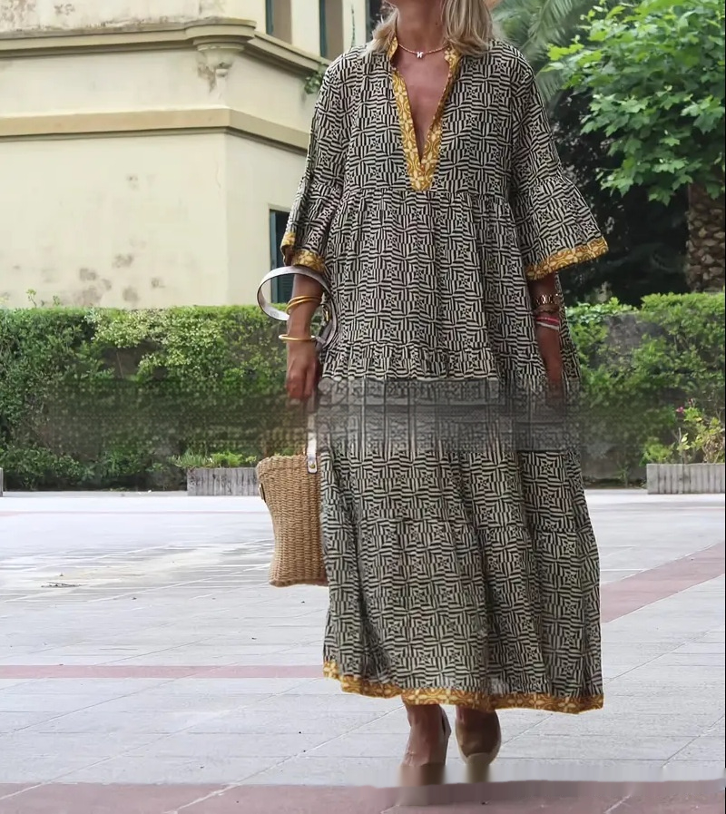 Product information:Material: PolyesterStyle: Vintage BohemianFeatures: Floral print, A-line silhouette, midi length, 3/4 sleeves, loose waist, color-blocking design, pull-on styleColour: Black, Beige, GoldSize: S, M, L, XL, XXL, XXXL