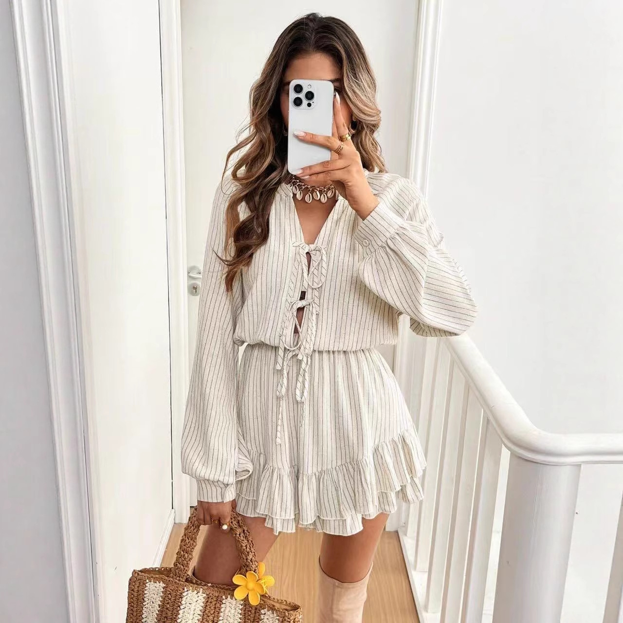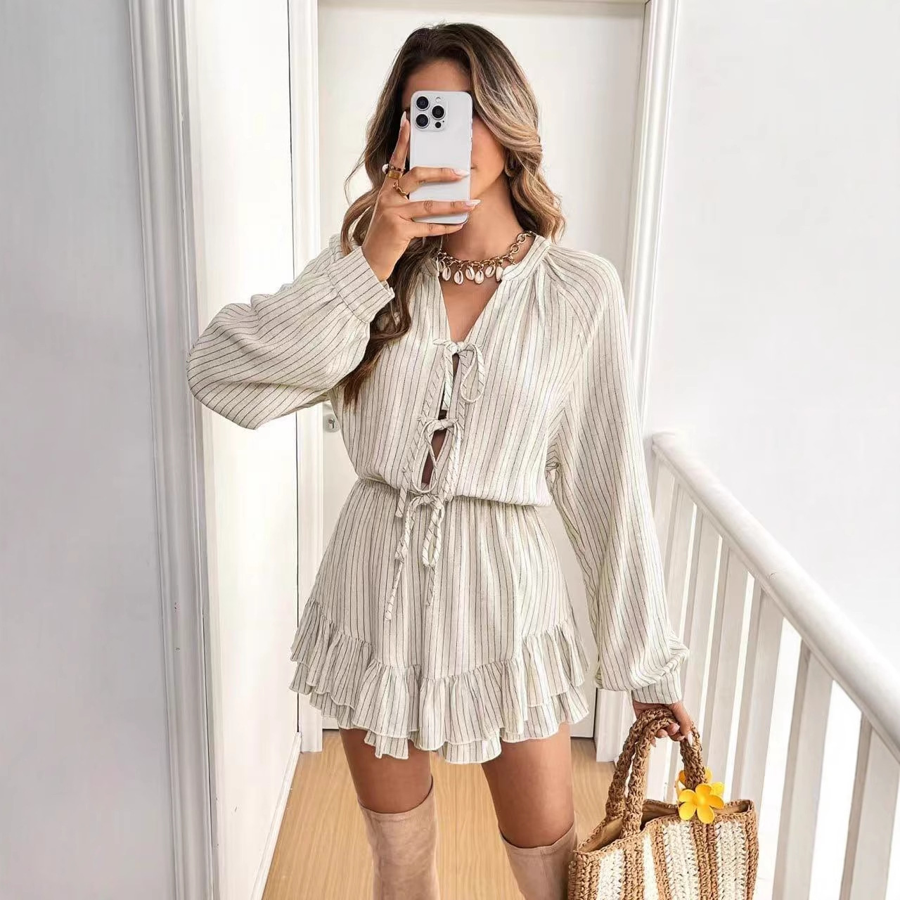 Product information: Color: White Waist Style: High Waist Sizes: S, M, L Skirt Length: Mid-length Sleeve Length: Long Sleeve Dress Category: One-piece Dress