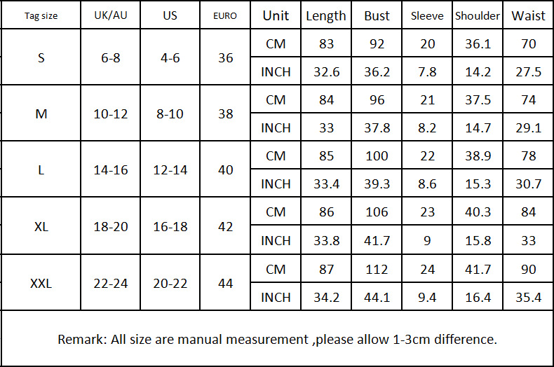 1. Asian sizes are 1 to 2 sizes smaller than European and American people. Choose the larger size if your size between two sizes. Please allow 2-3cm differences due to manual measurement. 2. Please check the size chart carefully before you buy the item, if you don't know how to choose size, please contact our customer service. 3.As you know, the different computers display colors differently, the color of the actual item may vary slightly from the following images.