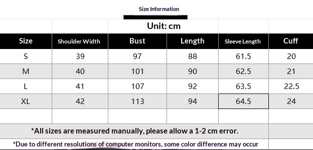 1. Asian sizes are 1 to 2 sizes smaller than European and American people. Choose the larger size if your size between two sizes. Please allow 2-3cm differences due to manual measurement. 2. Please check the size chart carefully before you buy the item, if you don't know how to choose size, please contact our customer service. 3.As you know, the different computers display colors differently, the color of the actual item may vary slightly from the following images.
