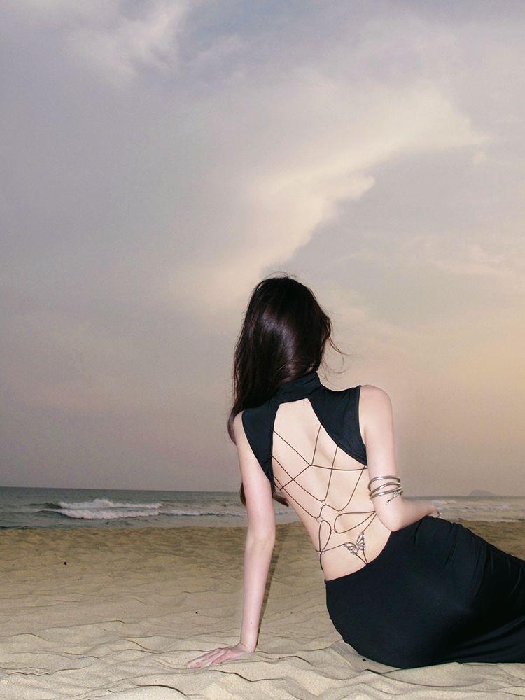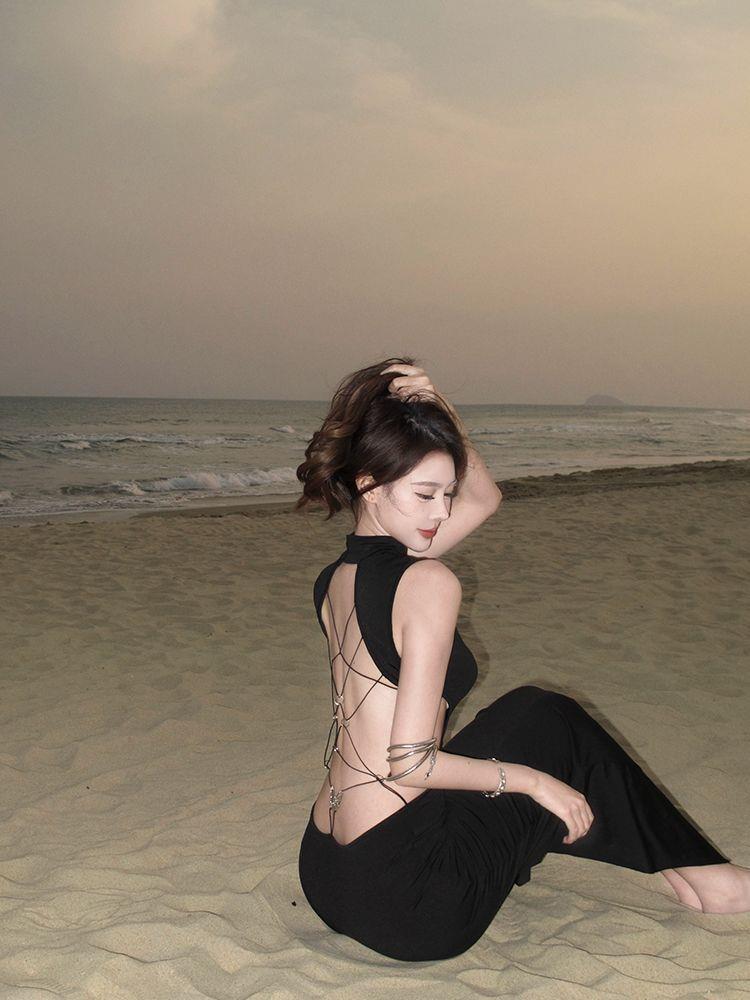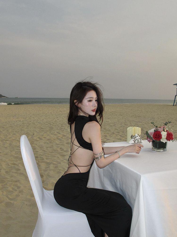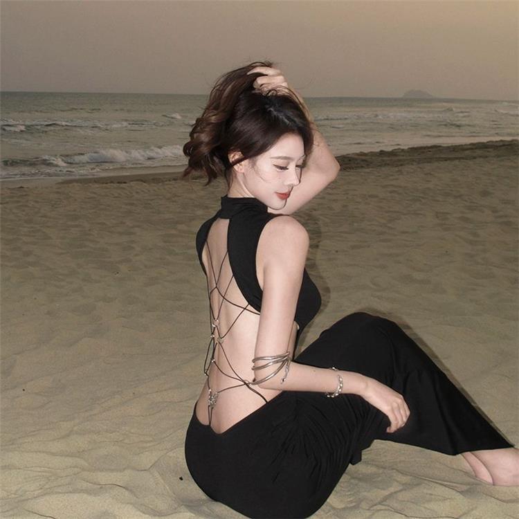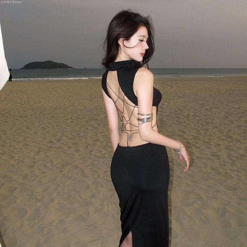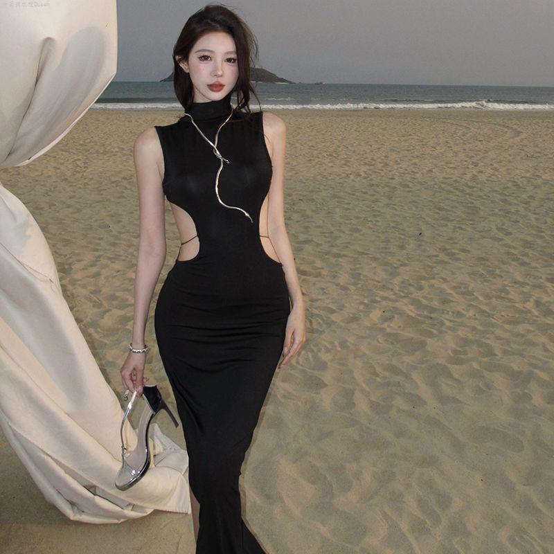 Product information:Color: Black Size: S, M, L Skirt Length: Mid-length Sleeve Length: Sleeveless Dress Type: One-piece dress