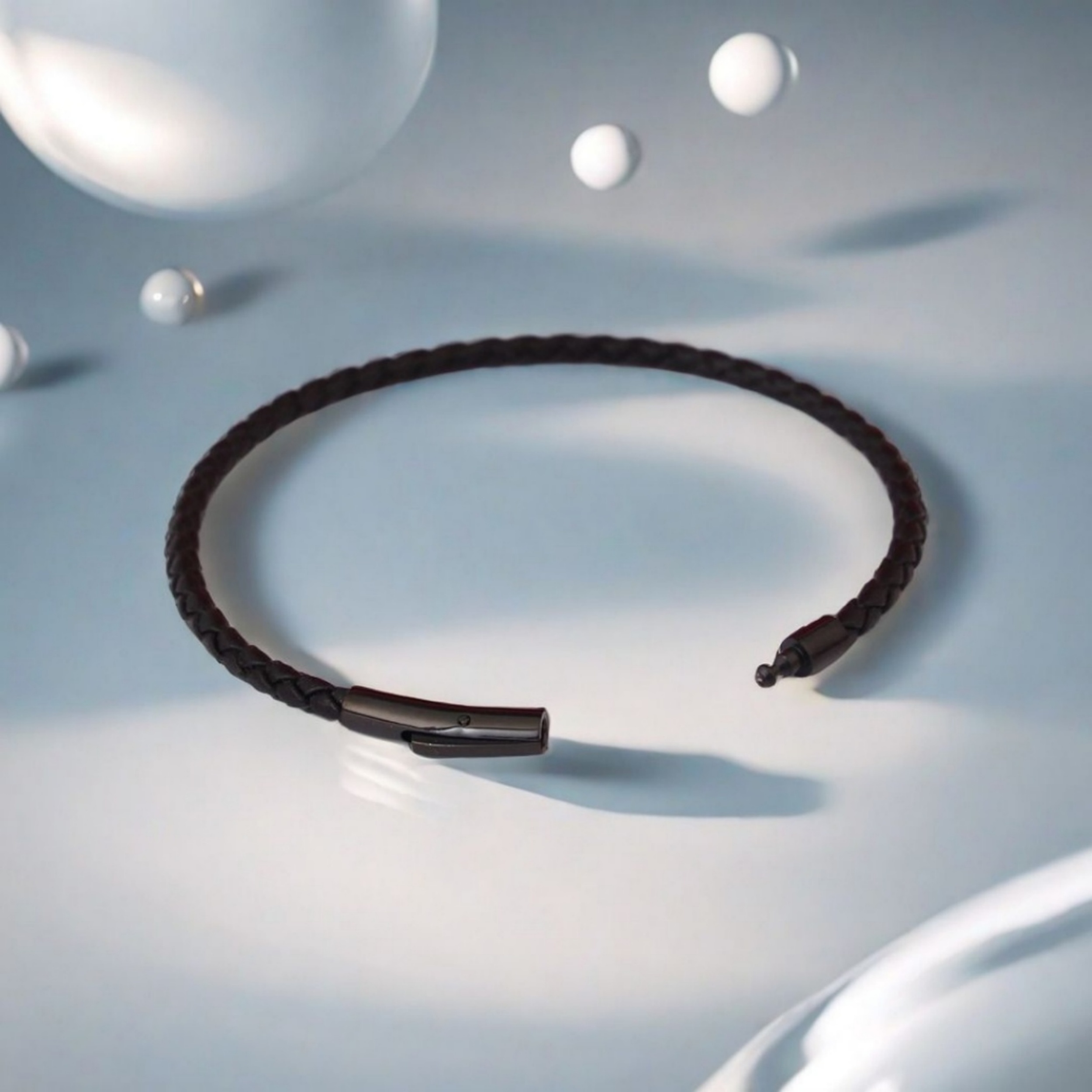 3.0mm Stainless Steel Leather Cord Bracelet With A Single Buckle And Wear-resistant Edging.