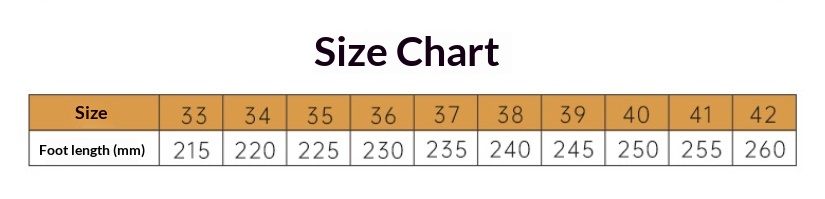 Sizes: 33, 34, 35, 36, 37, 38, 39, 40, 41, 42