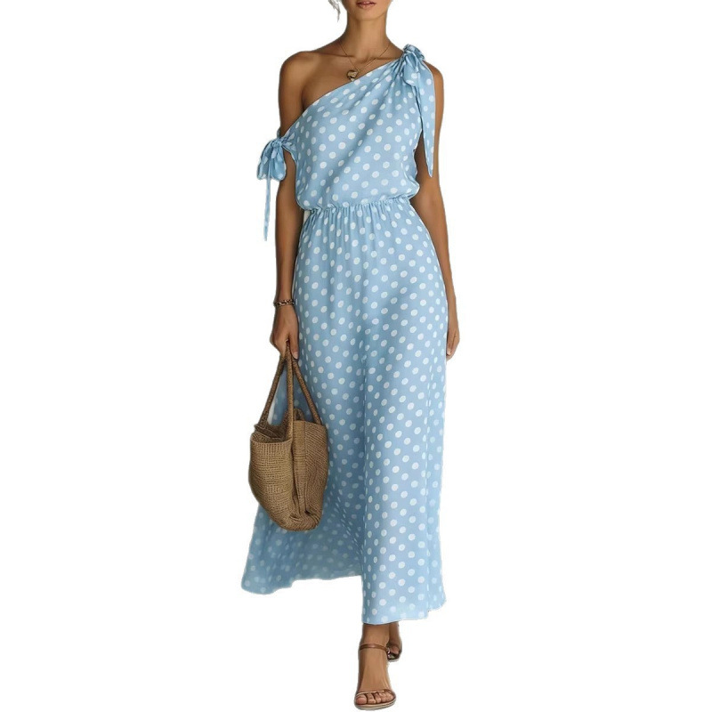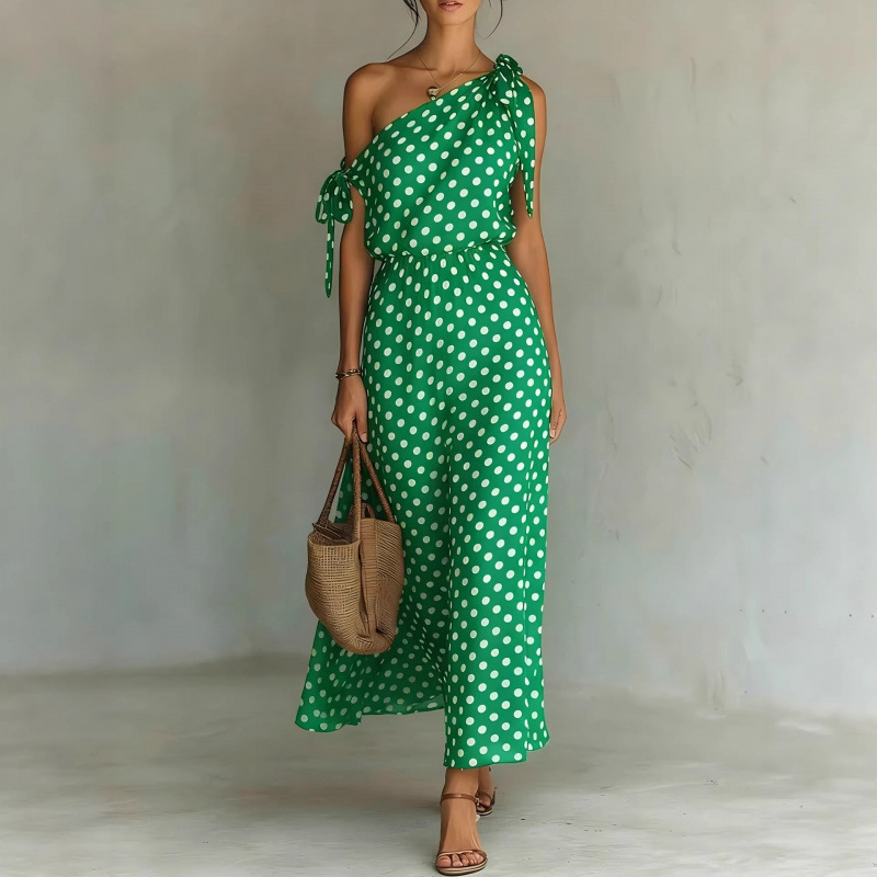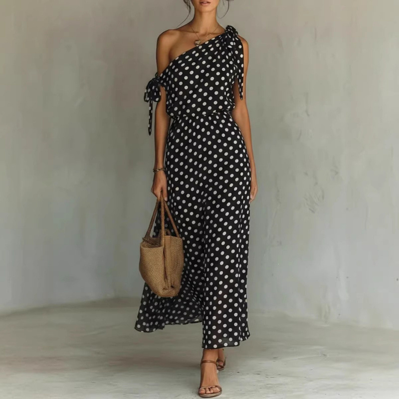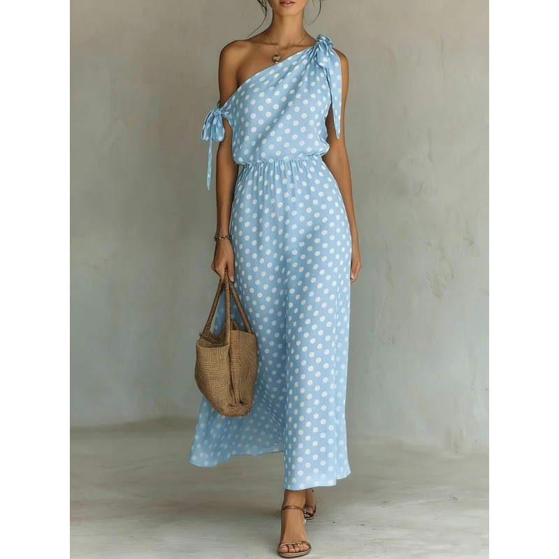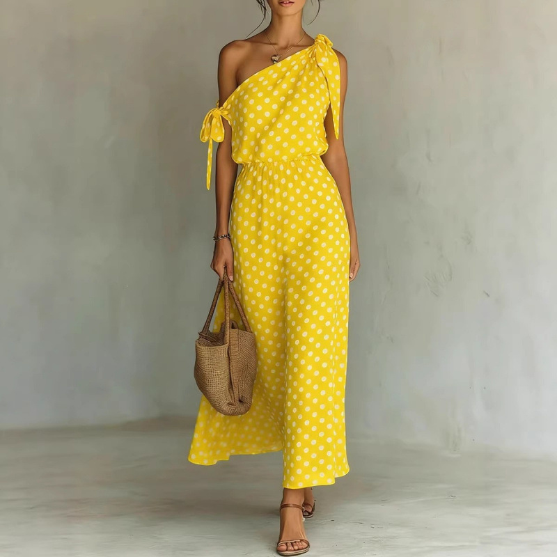 Features: 3D-effect print, digital printing technique, slim-fit pencil dress, off-shoulder sleeveless design, elastic waist, long length