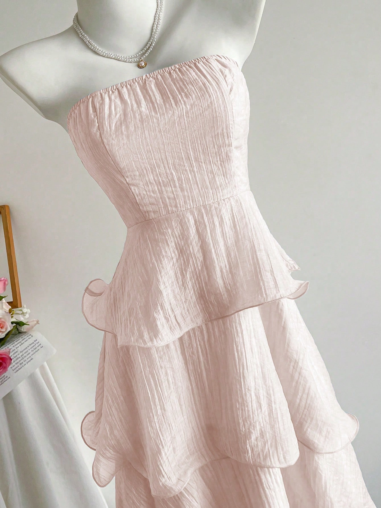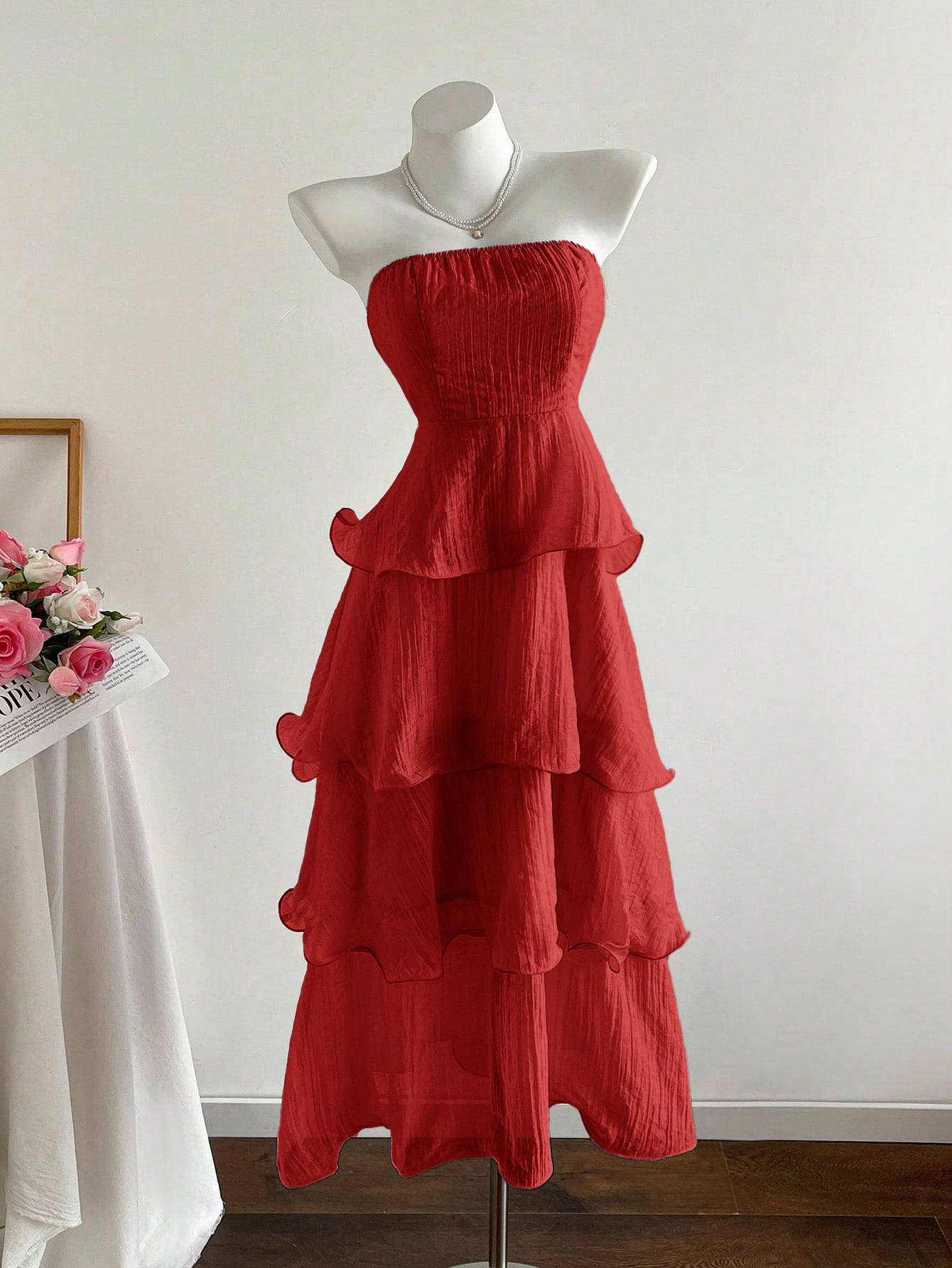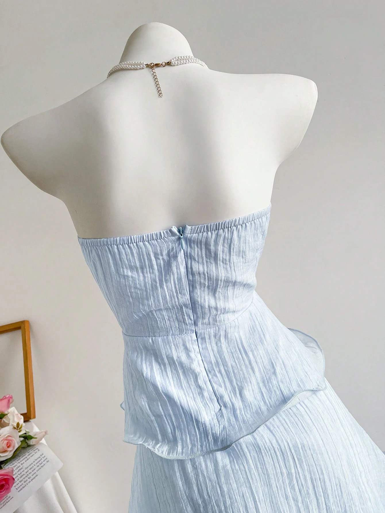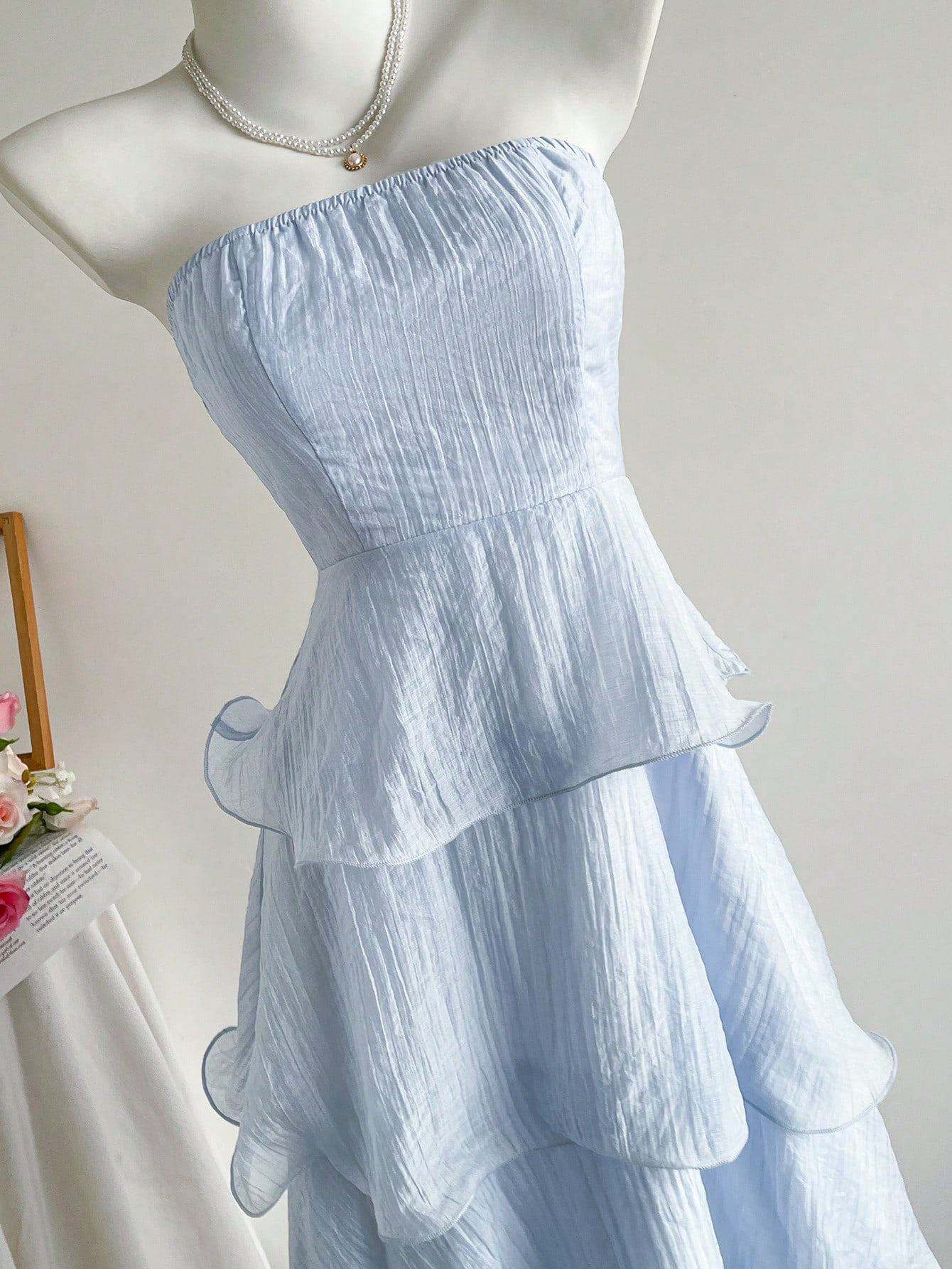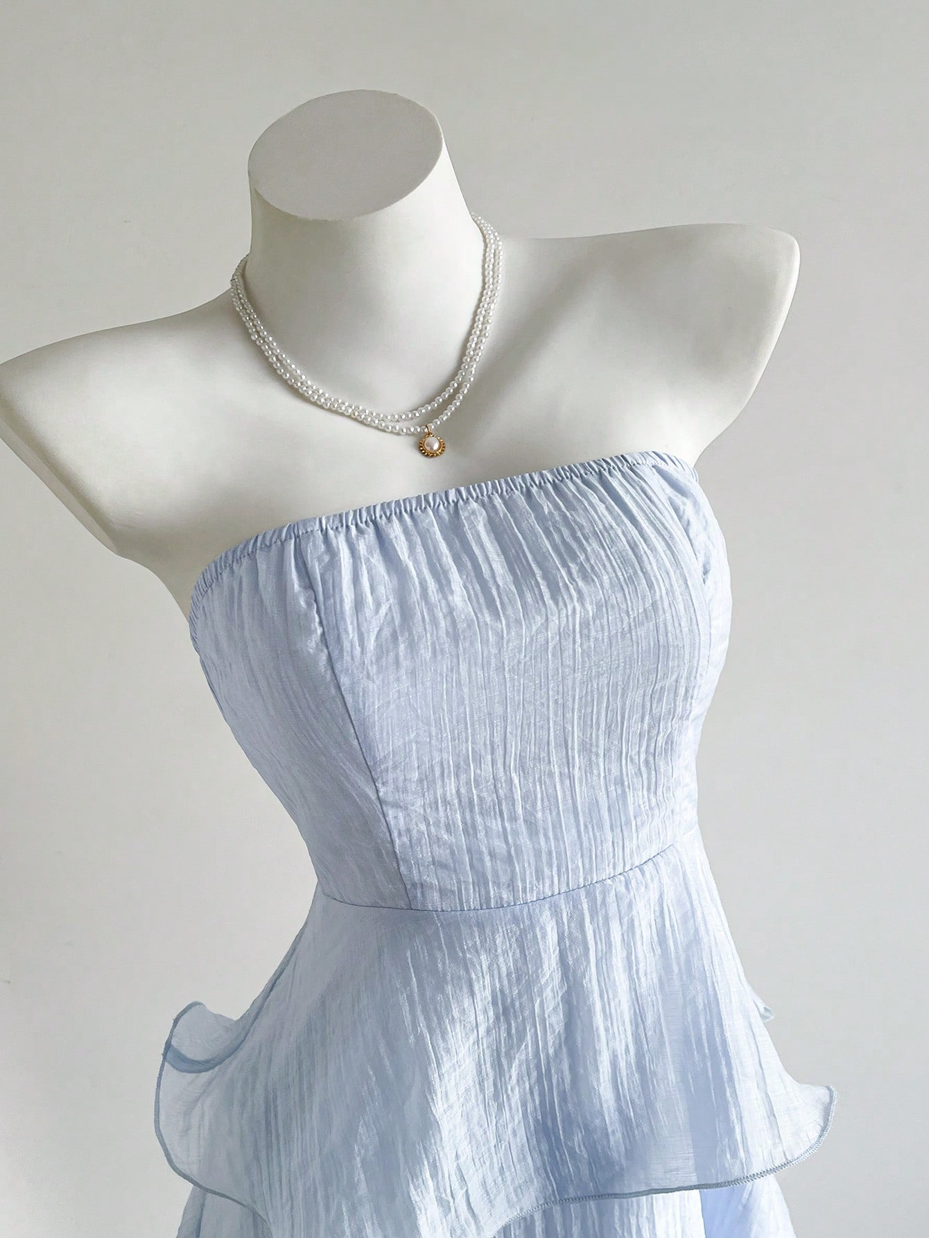 Features: A-line, High Waist, Lace, Pleated, Tube Top Style, Sleeveless, Maxi Length