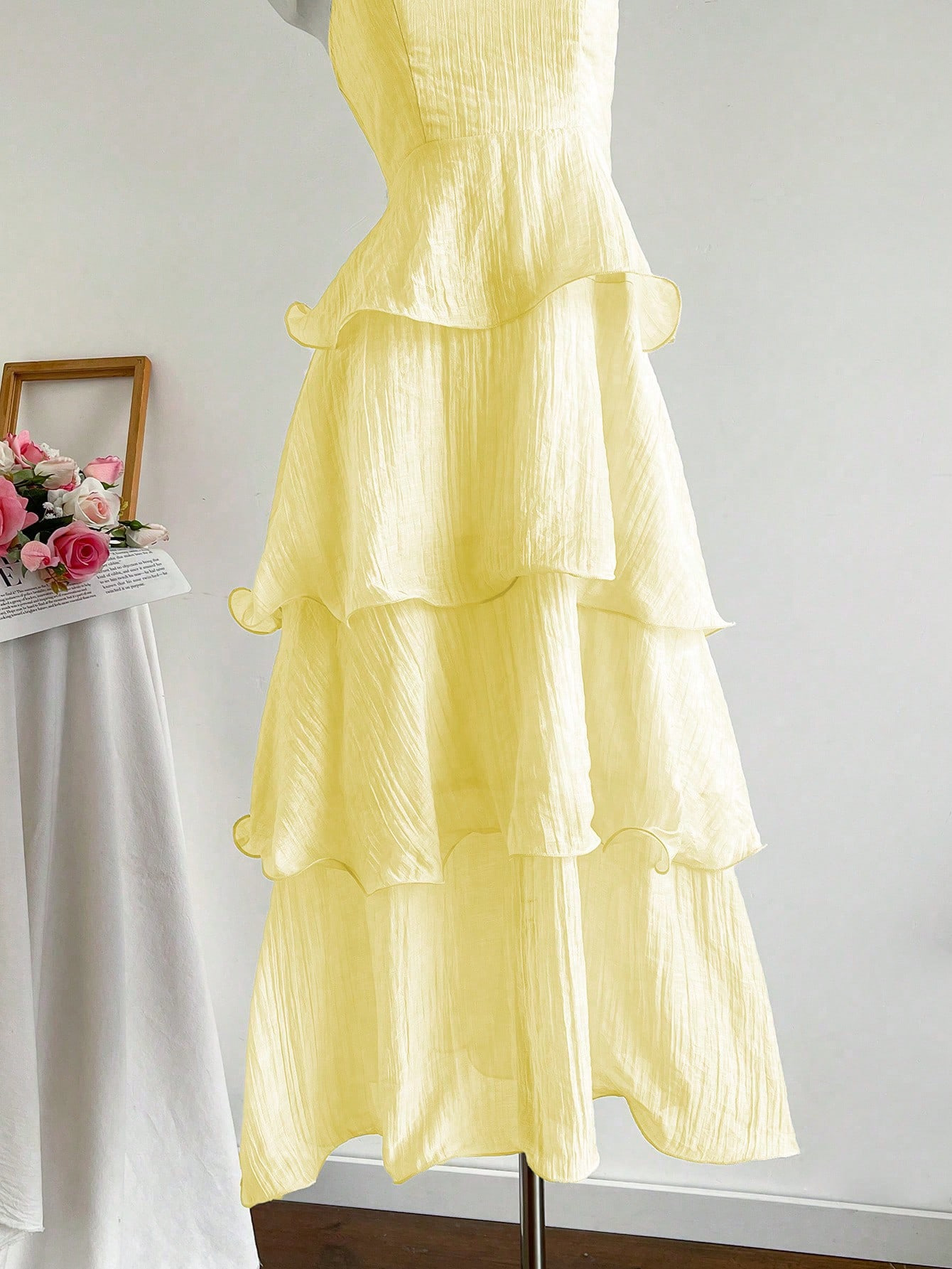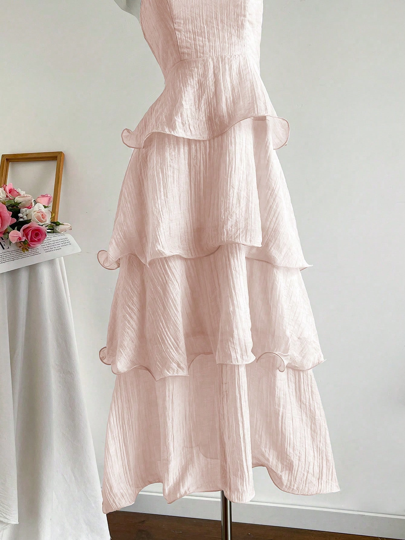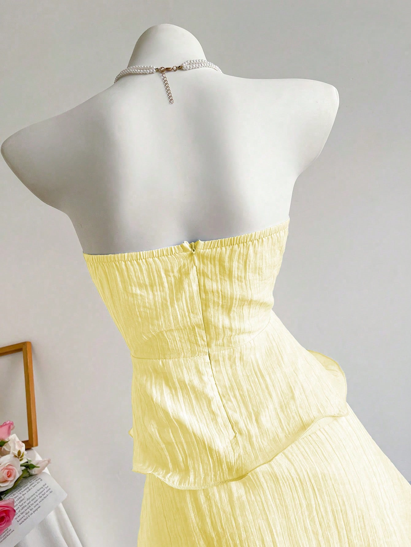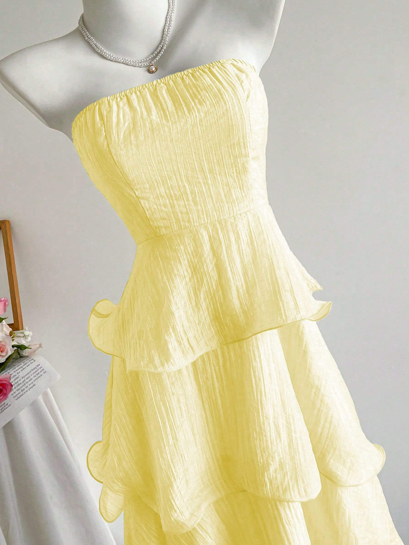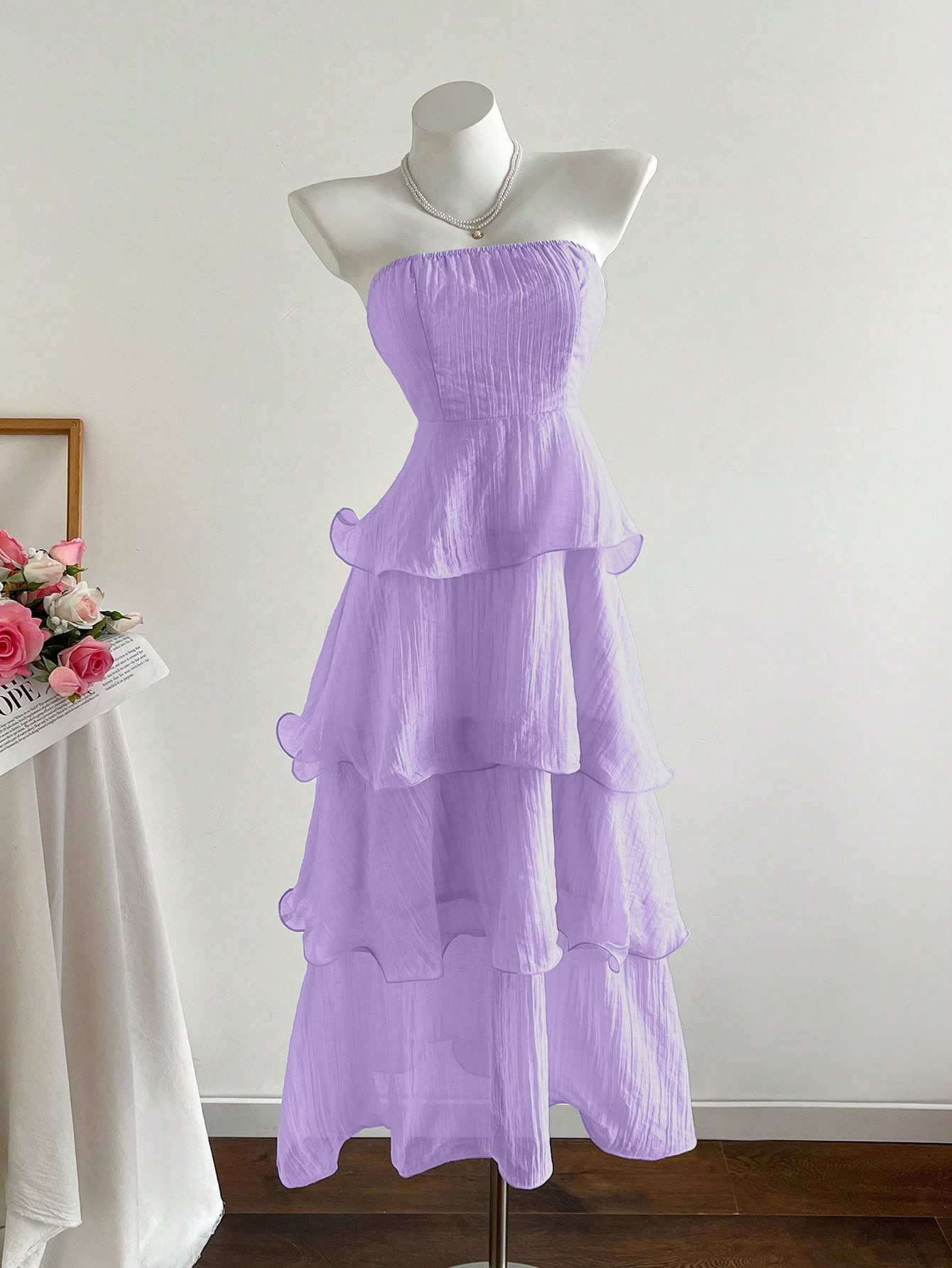 Features: A-line, High Waist, Lace, Pleated, Tube Top Style, Sleeveless, Maxi Length