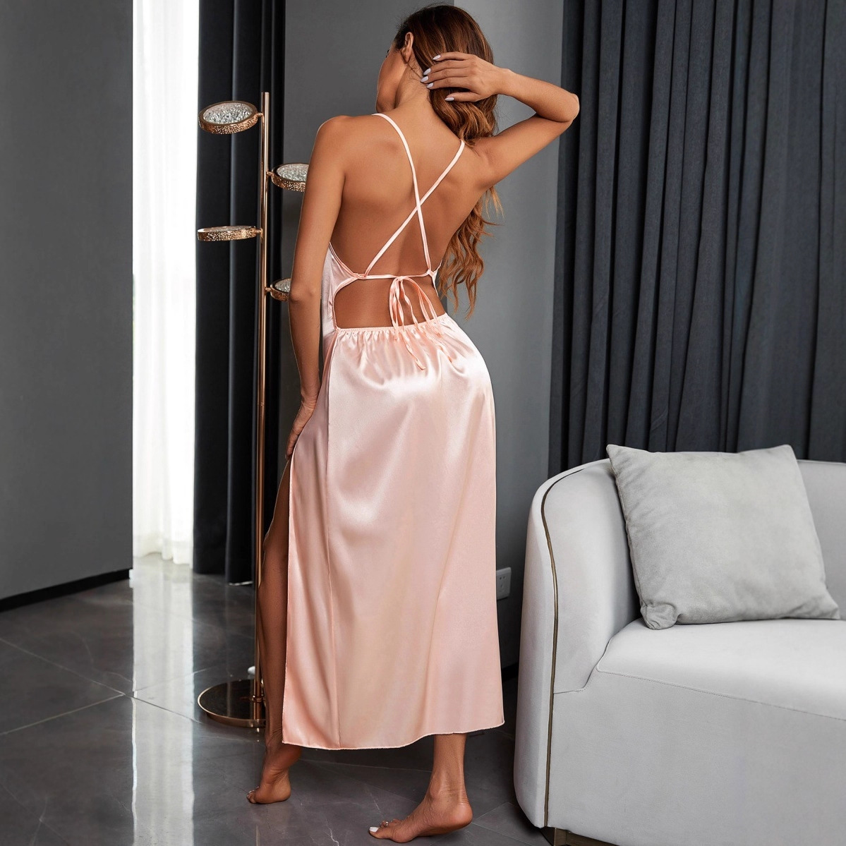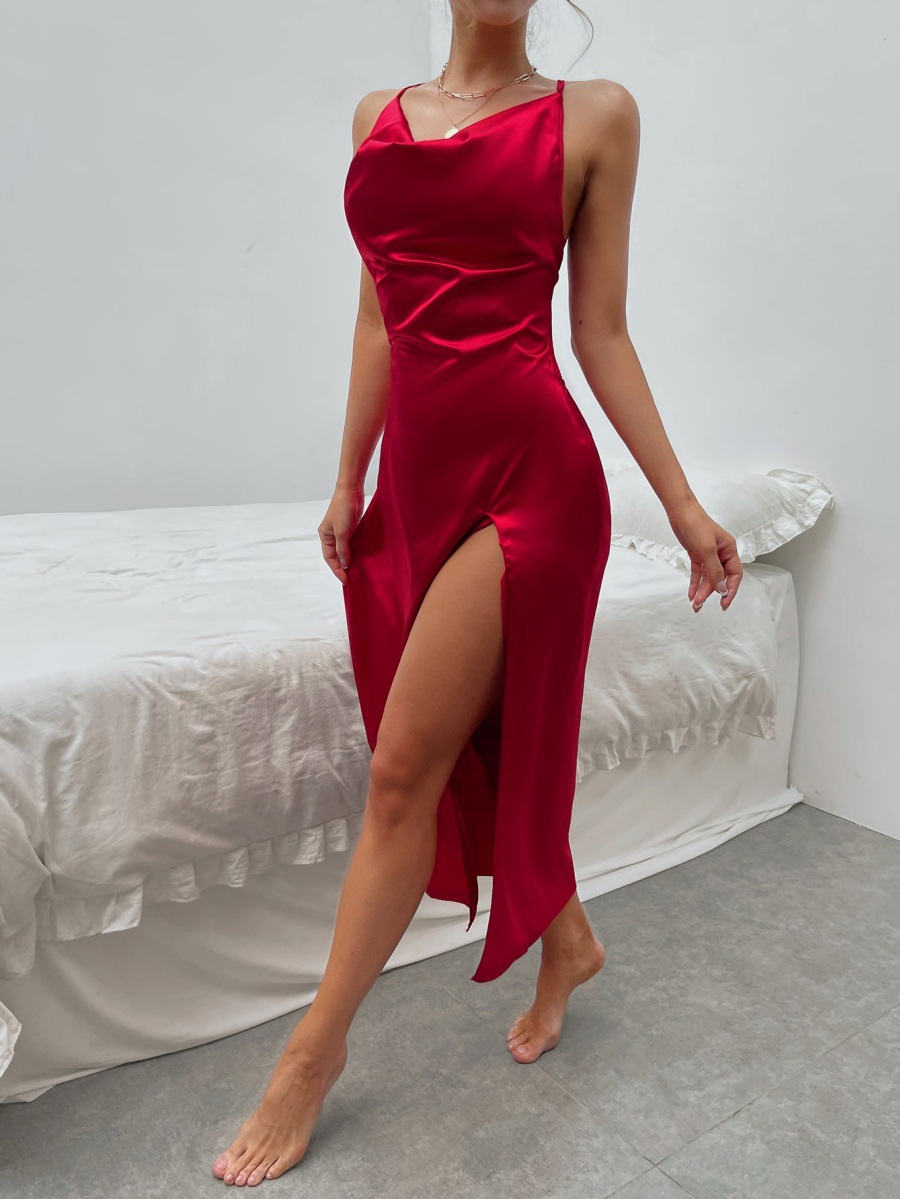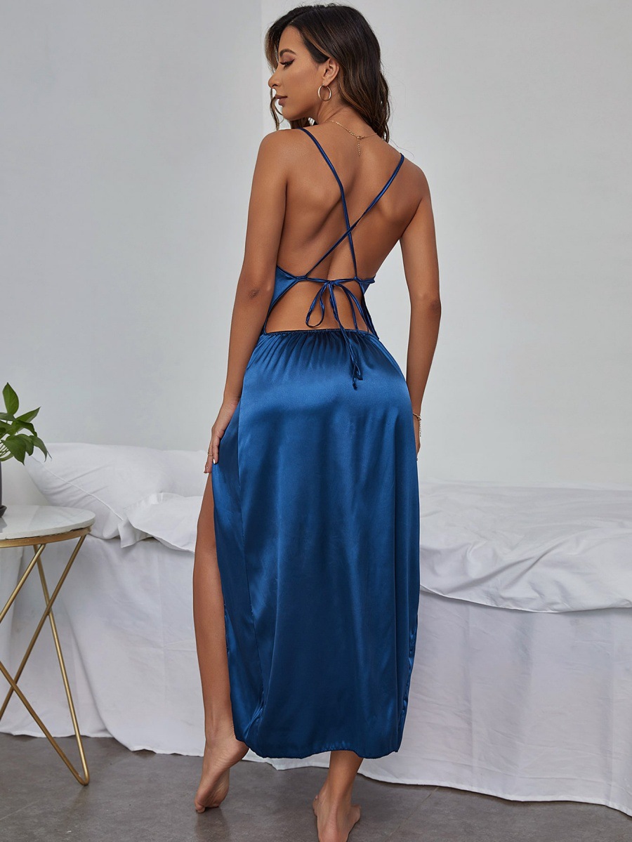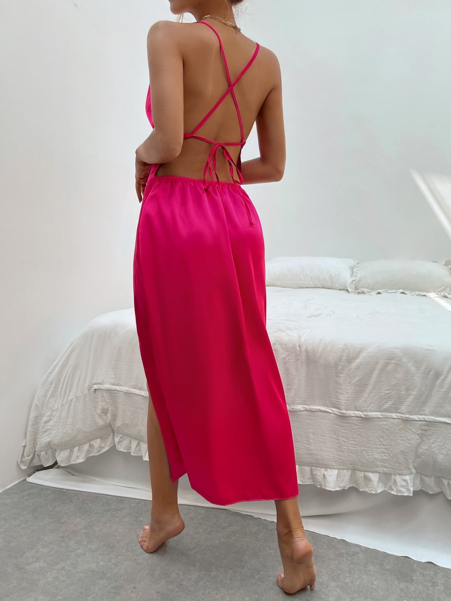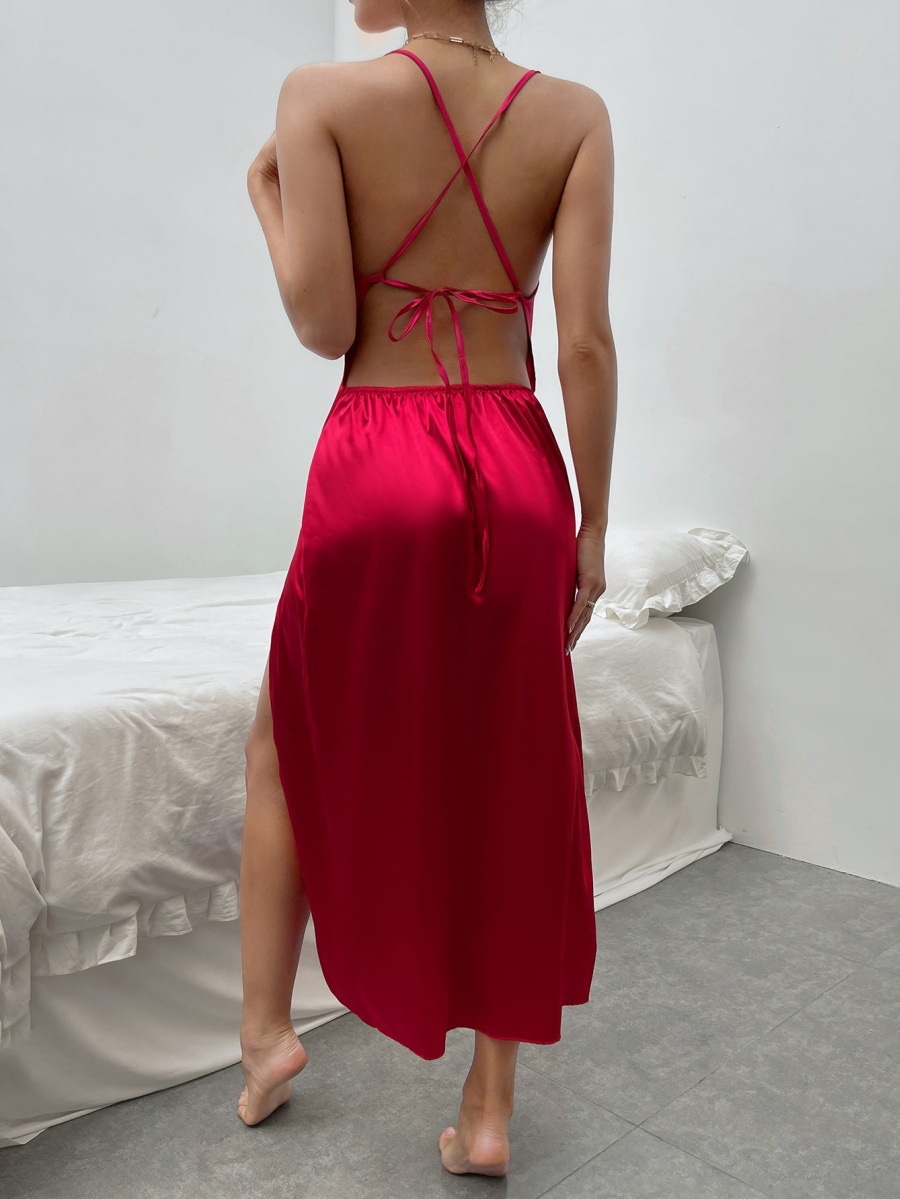 Trendy Elements: Lace-up Details, V-Neck, Fashionable, Halter Neck, Asymmetrical Design, Cross-Tie Straps, Slit, Open Back, Patchwork