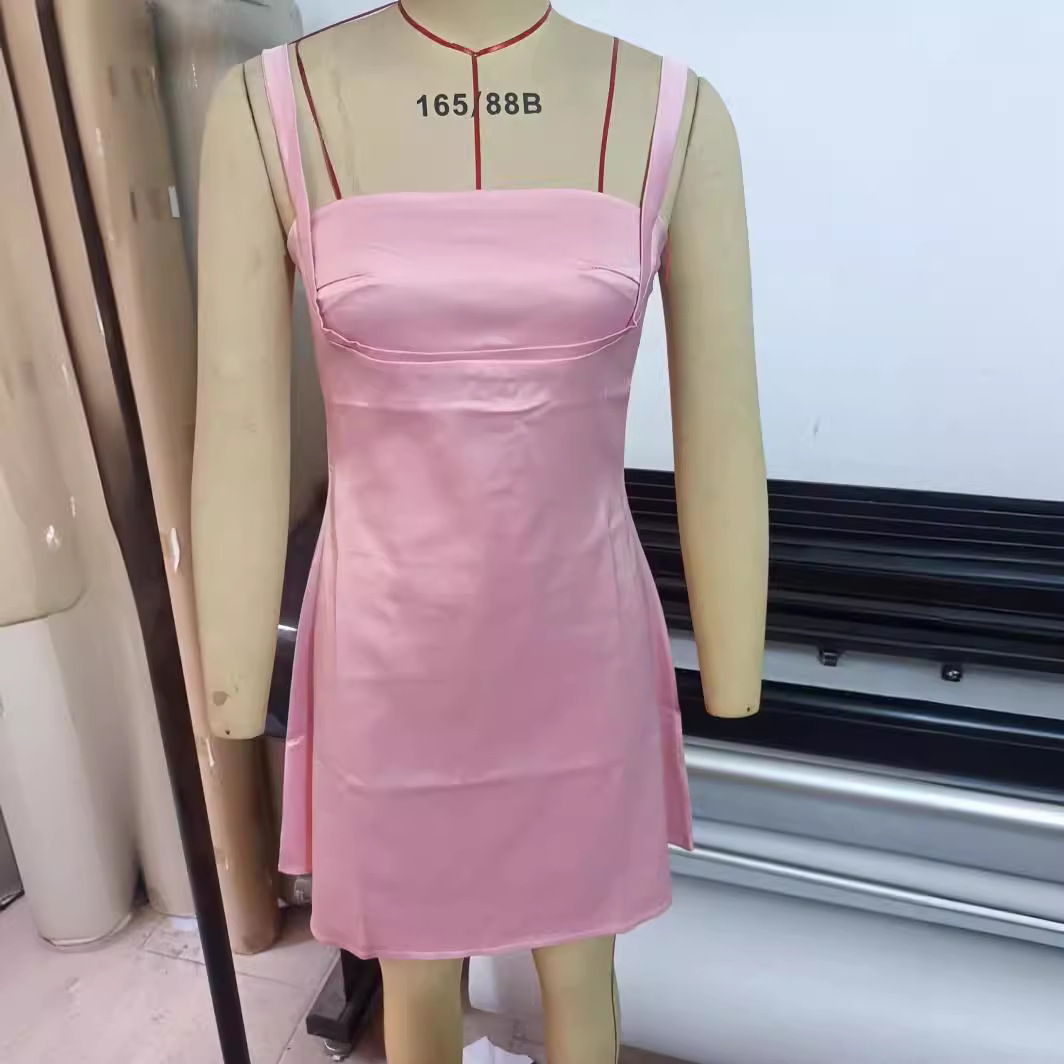 Product information:Main fabric composition: polyester (polyester fiber)Sleeve type: sleevelessWaist type: middle waistColor: pink, ivory, blackSize Information:Size: s, m, l, xsPacking list:Dress *1