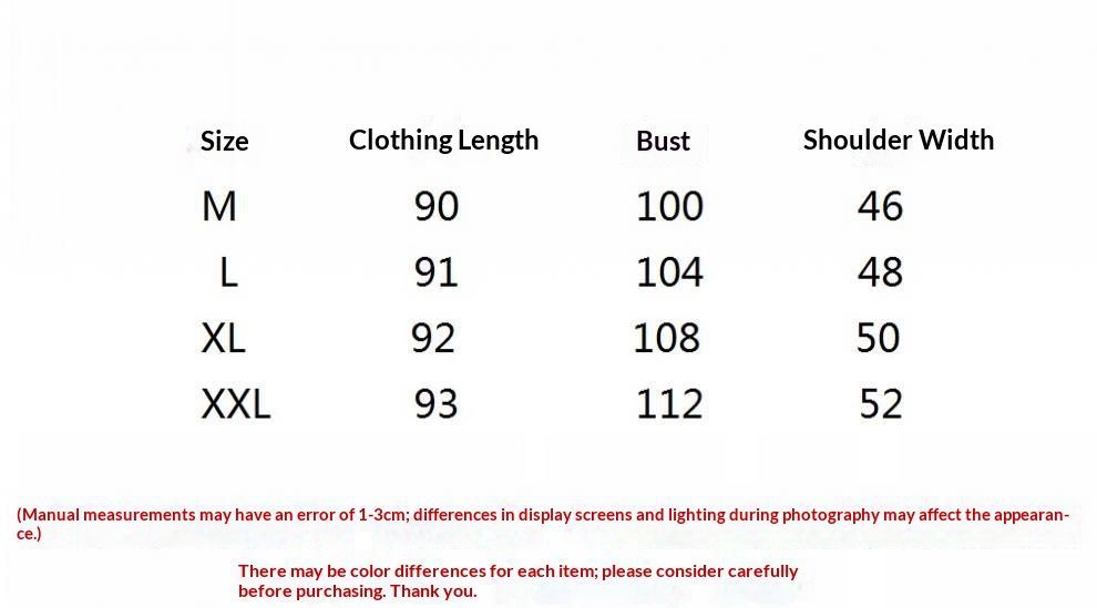 1. Asian sizes are 1 to 2 sizes smaller than European and American people. Choose the larger size if your size between two sizes. Please allow 2-3cm differences due to manual measurement. 2. Please check the size chart carefully before you buy the item, if you don't know how to choose size, please contact our customer service. 3.As you know, the different computers display colors differently, the color of the actual item may vary slightly from the following images.