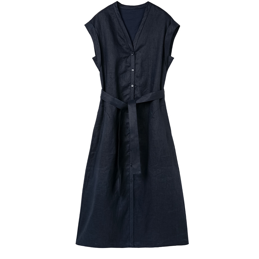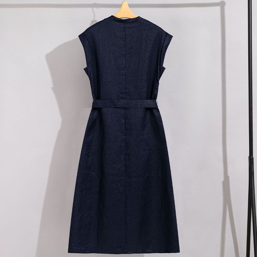 Features: A-line silhouette, V-neck design, tie detail, sleeveless maxi dress, mid-rise waist, basic style with patchwork craftsmanship for an elegant and relaxed look