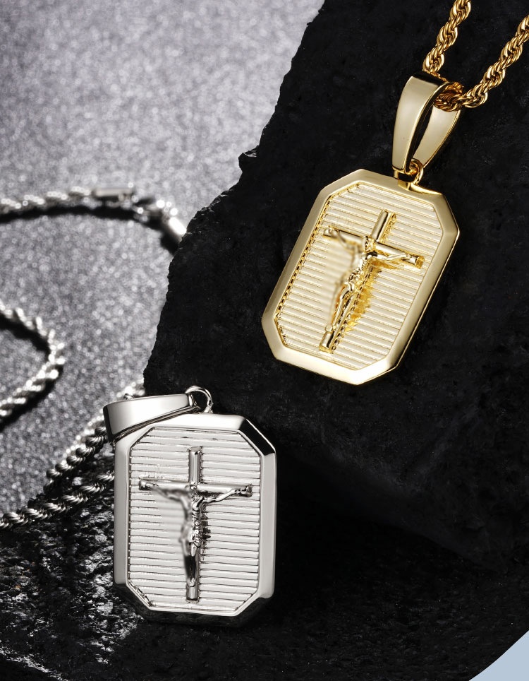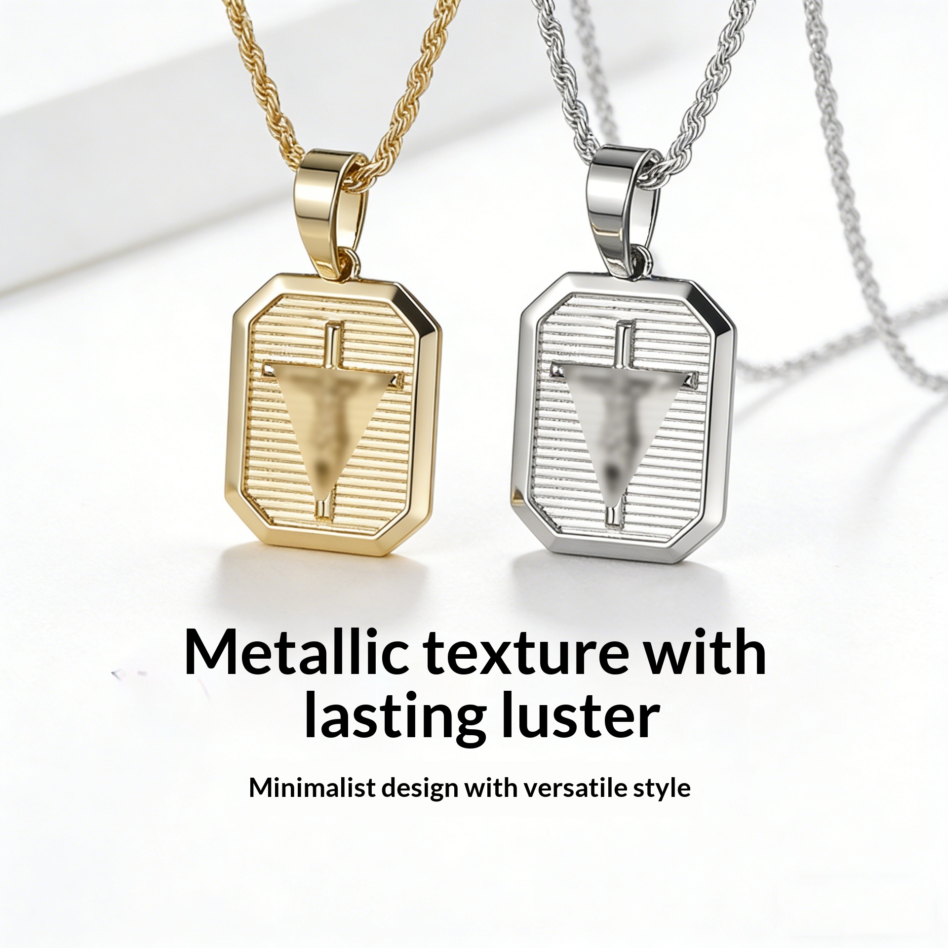 Colors: Silver Square Plate Pendant, Gold Square Plate Pendant, Silver Square Plate Pendant + Necklace, Gold Square Plate Pendant + Necklace