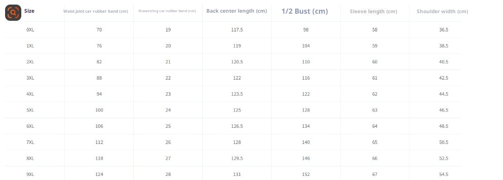 Sizes: 0XL, XL, 2XL, 3XL, 4XL, 5XL, 6XL