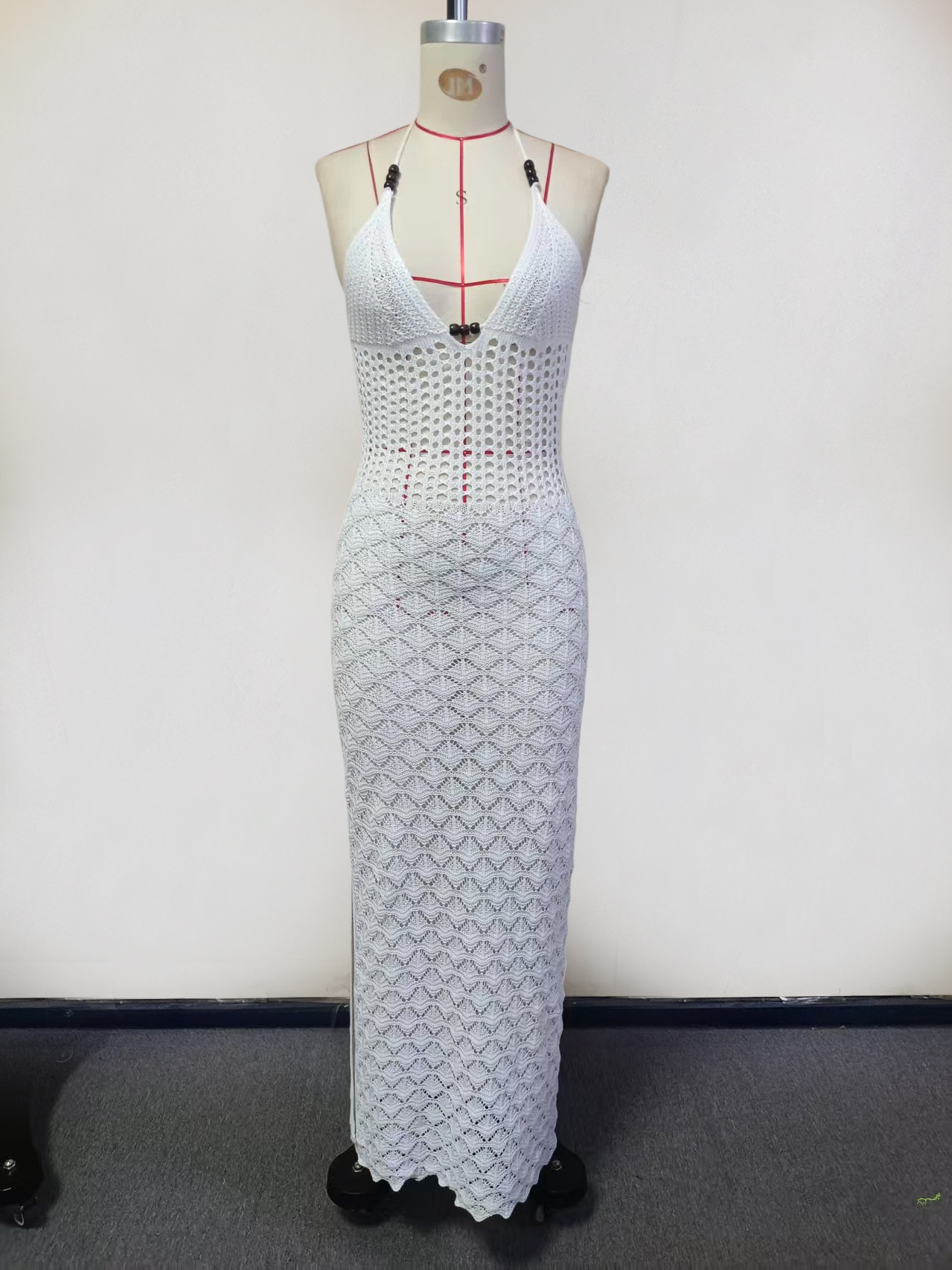 Product information: Fabric name: Knitted fabric Style: Knitted style Main fabric composition: Polyester (polyester) Process: Weaving Dress length: Long dress
