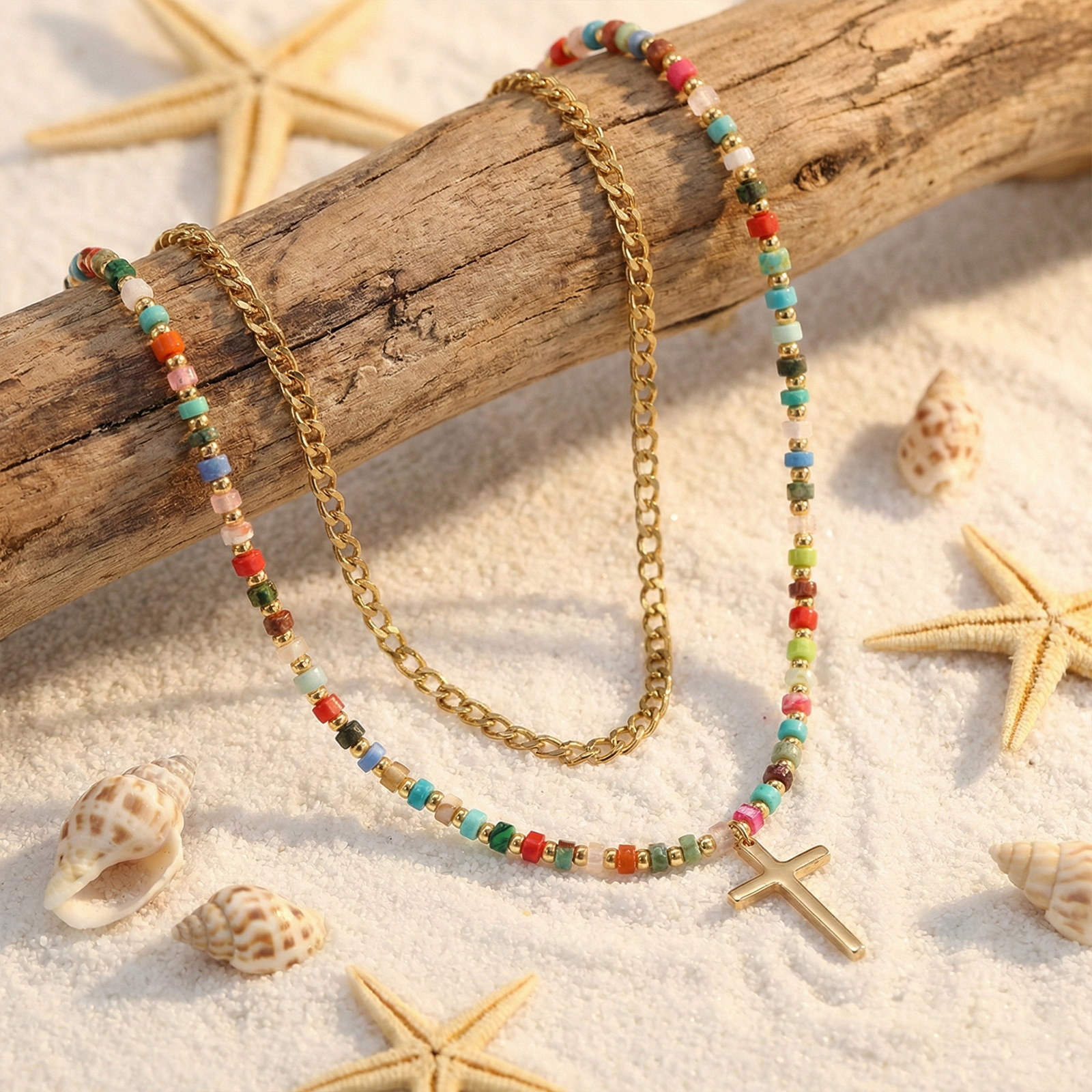 Product information:Craftsmanship: Handmade Occasion: Everyday wear Target Audience: Women Pendant Material: Stainless Steel Trendy Elements: Cross, Chain Style: Resort Style Circumference: 41 cm (inclusive) – 50 cm (inclusive)