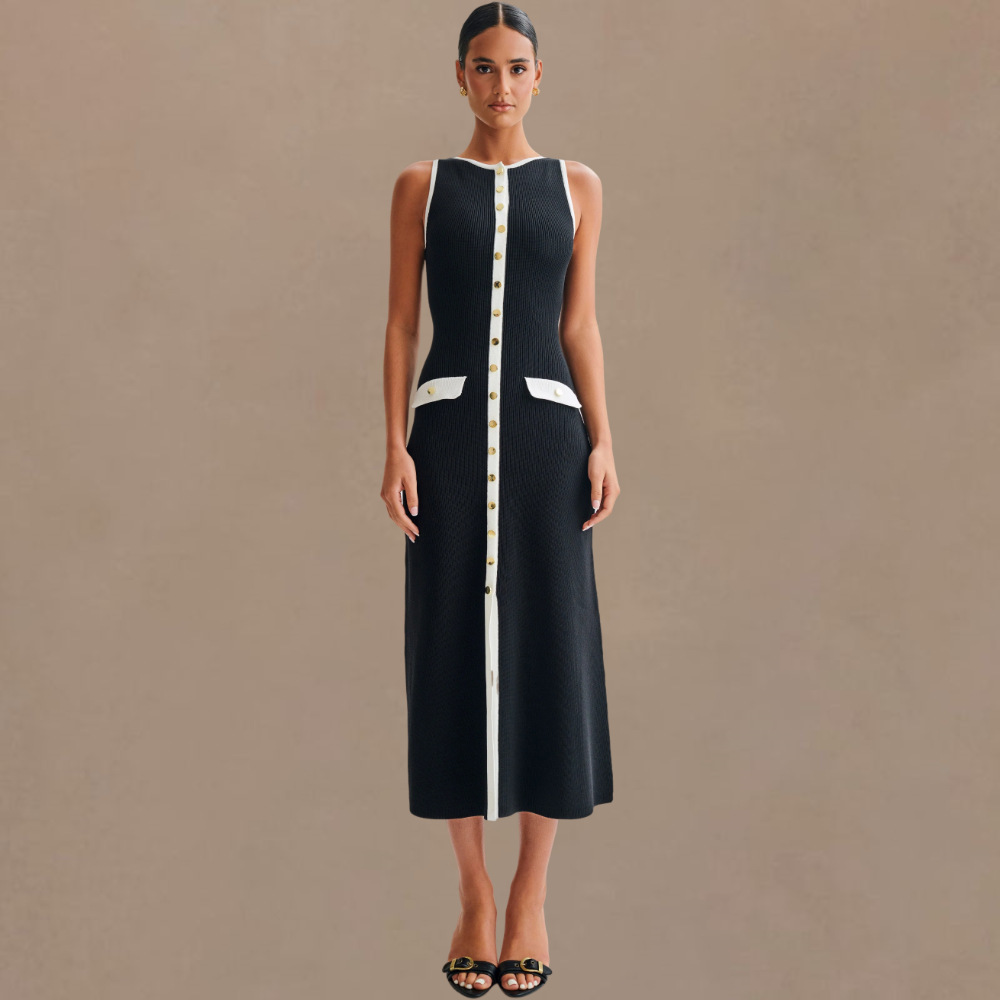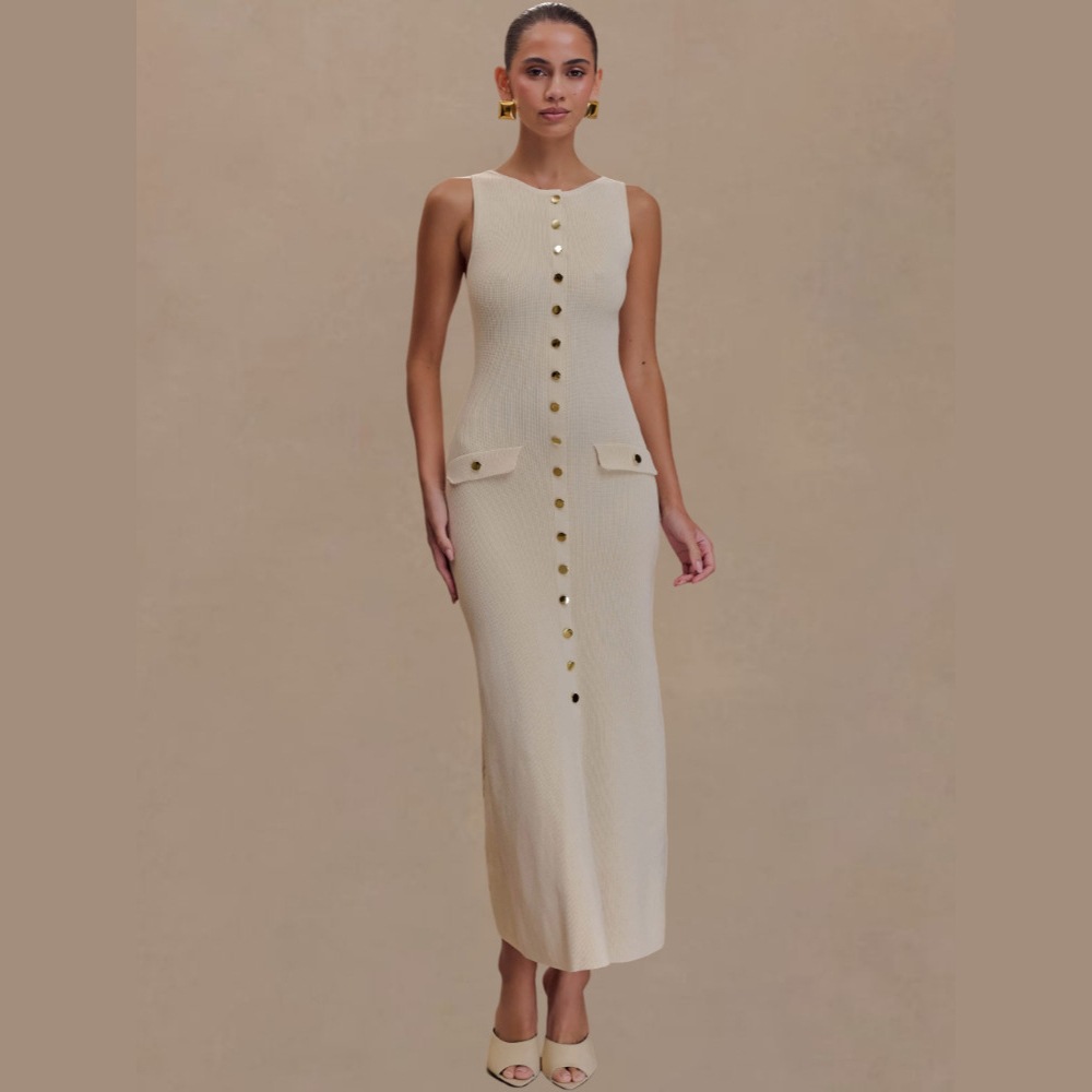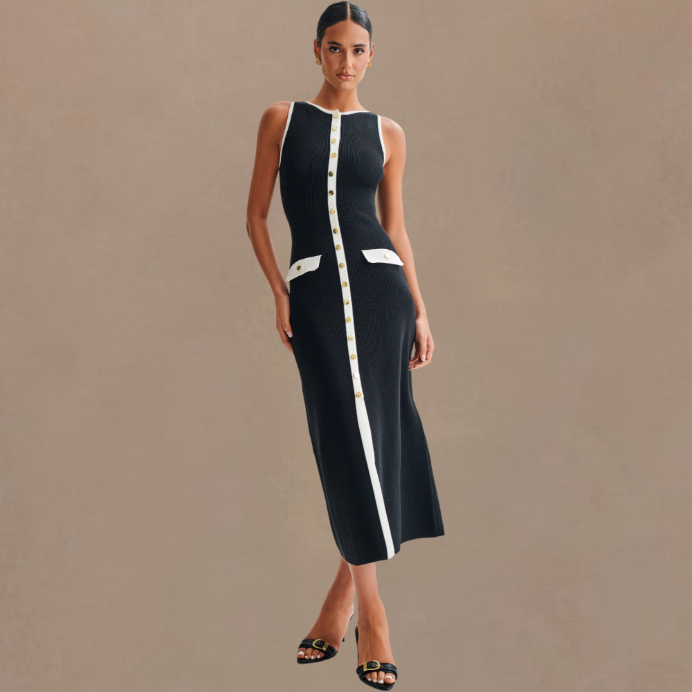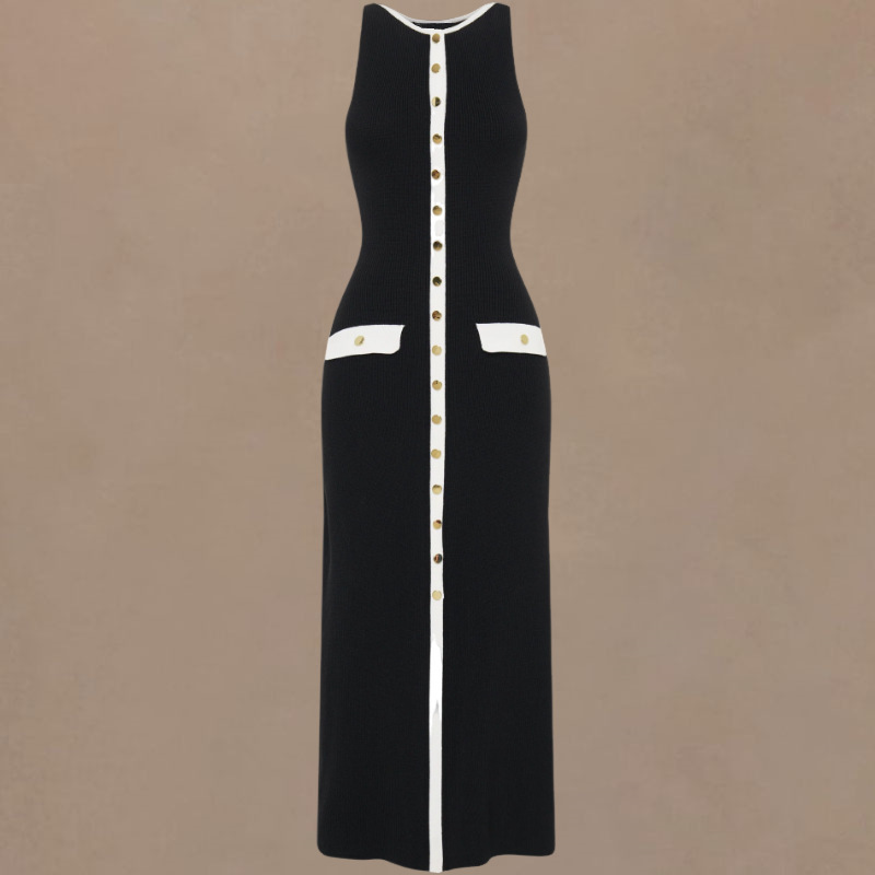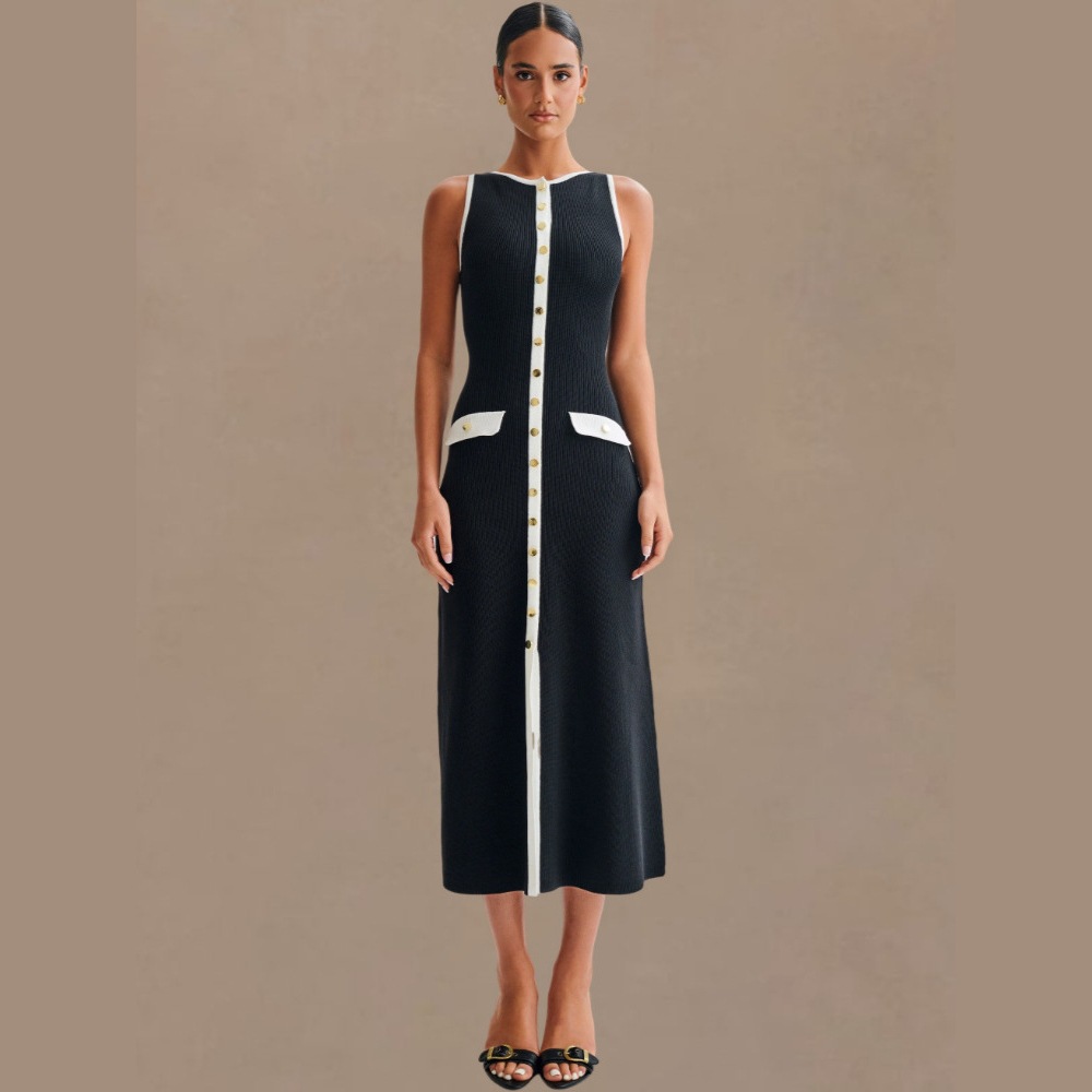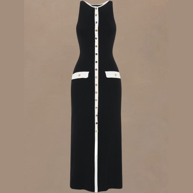 Features: Checkered pattern, bodycon silhouette, floor-length, color-blocking design, hooded style, sleeveless, single-button closure, quilted detailing