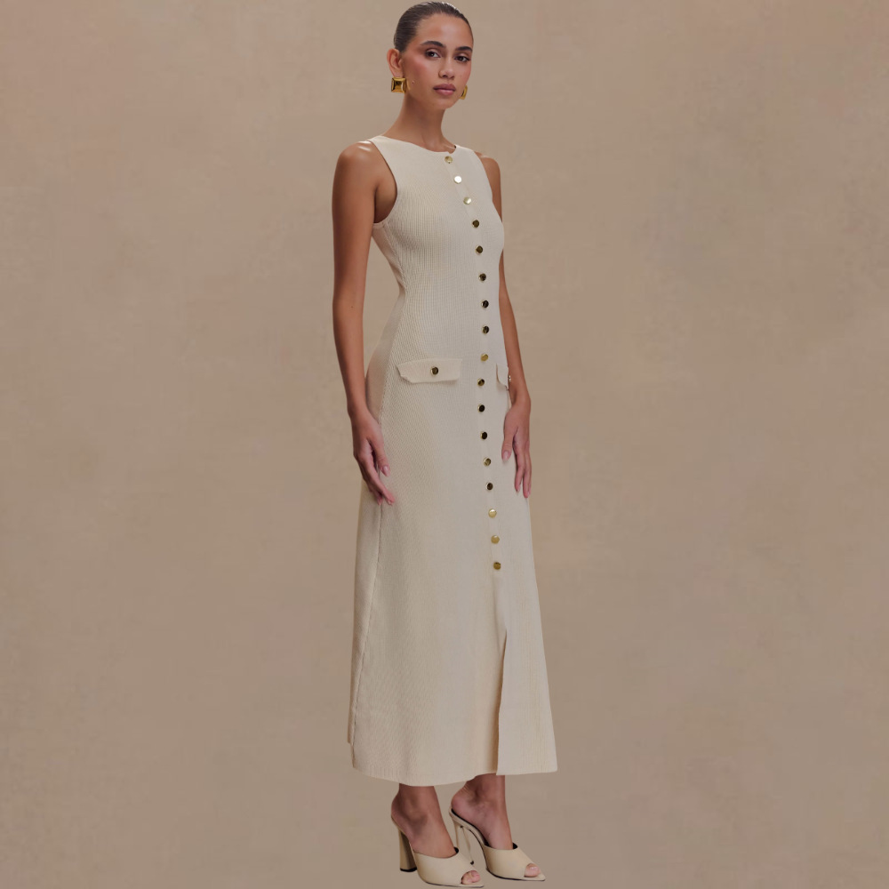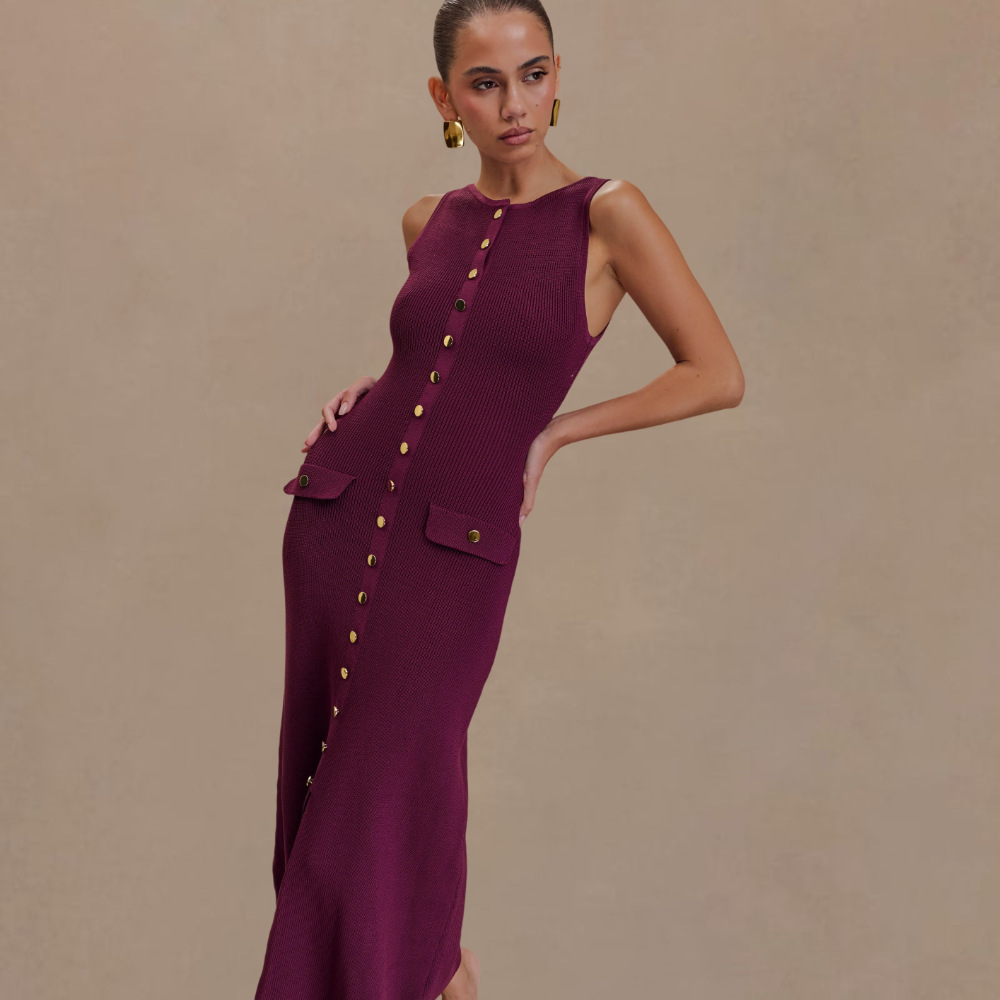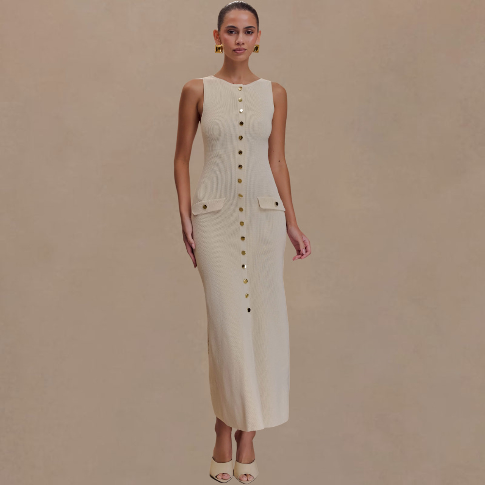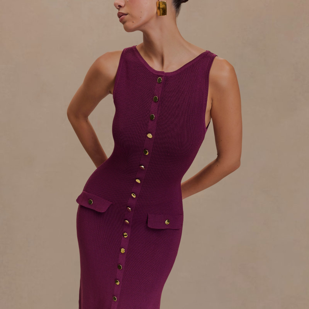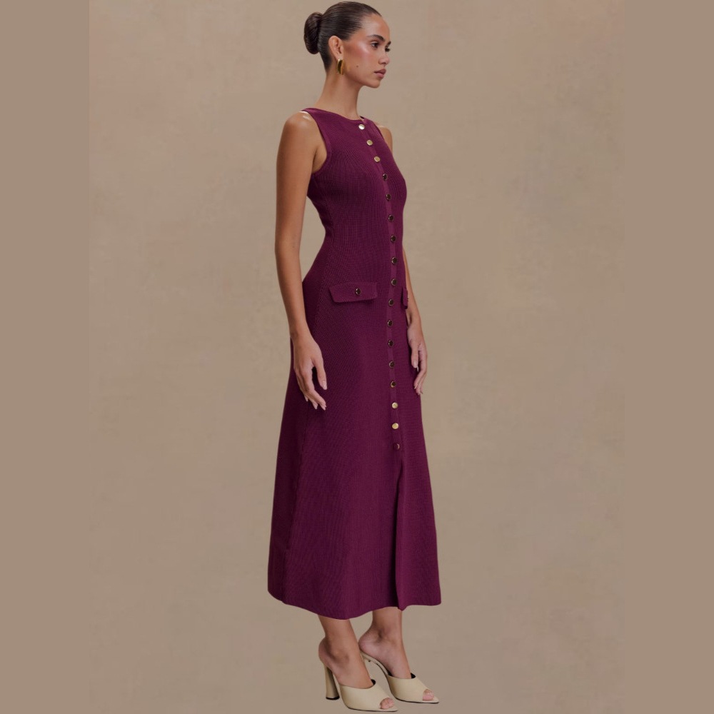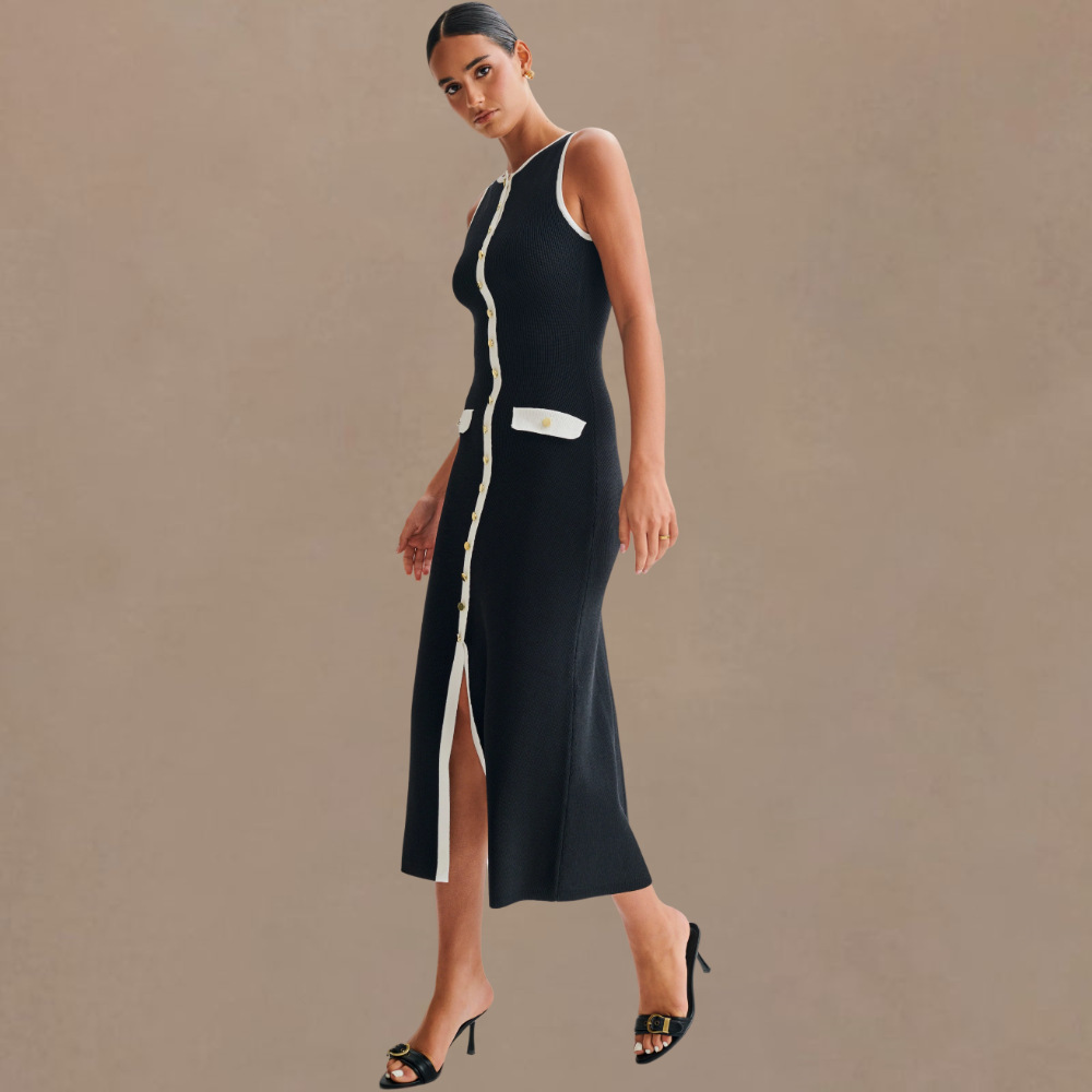 Features: Checkered pattern, bodycon silhouette, floor-length, color-blocking design, hooded style, sleeveless, single-button closure, quilted detailing