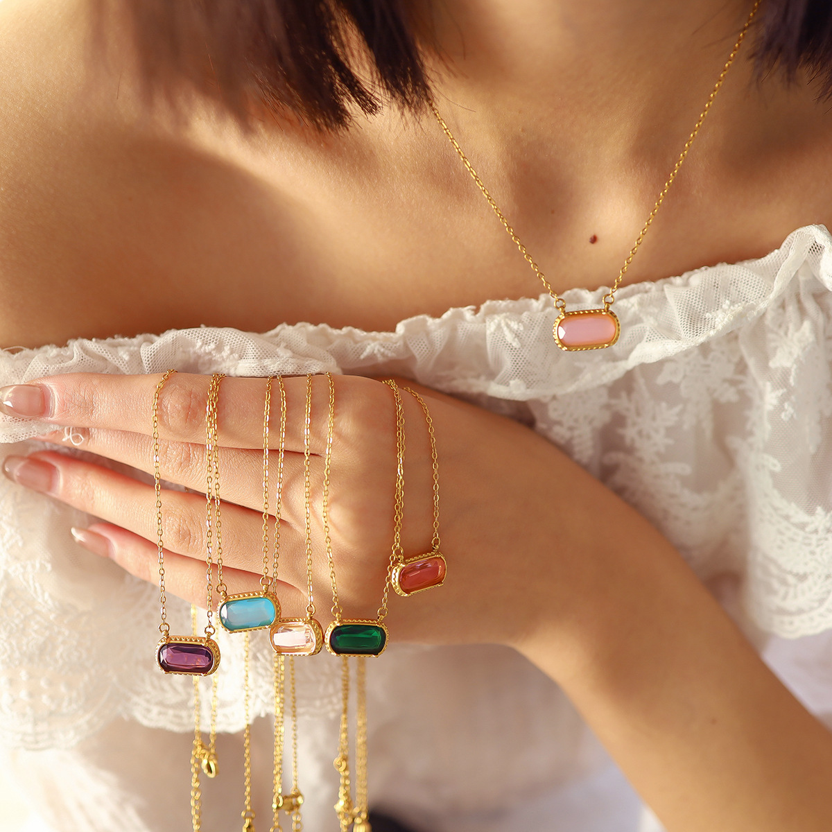 Product information:Processing Technique: Electroplating Colors: SN030043-BU, SN030043-GN, SN030043-PU, SN030043-QP, SN030043-W Target Audience: Women Pendant Material: Stainless Steel Chain Style: Standard Chain Material: Stainless Steel
